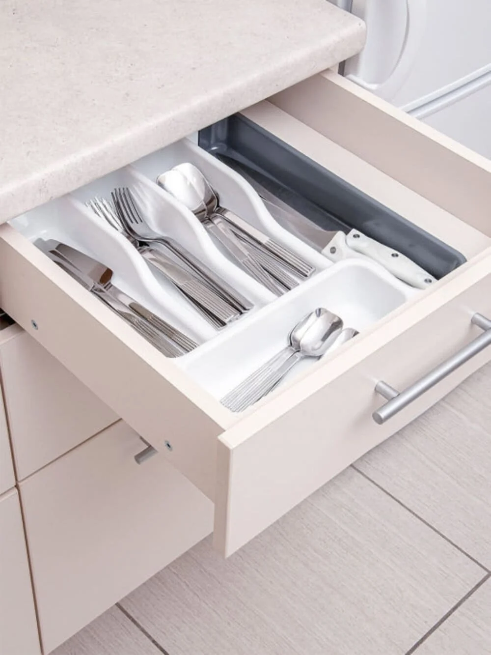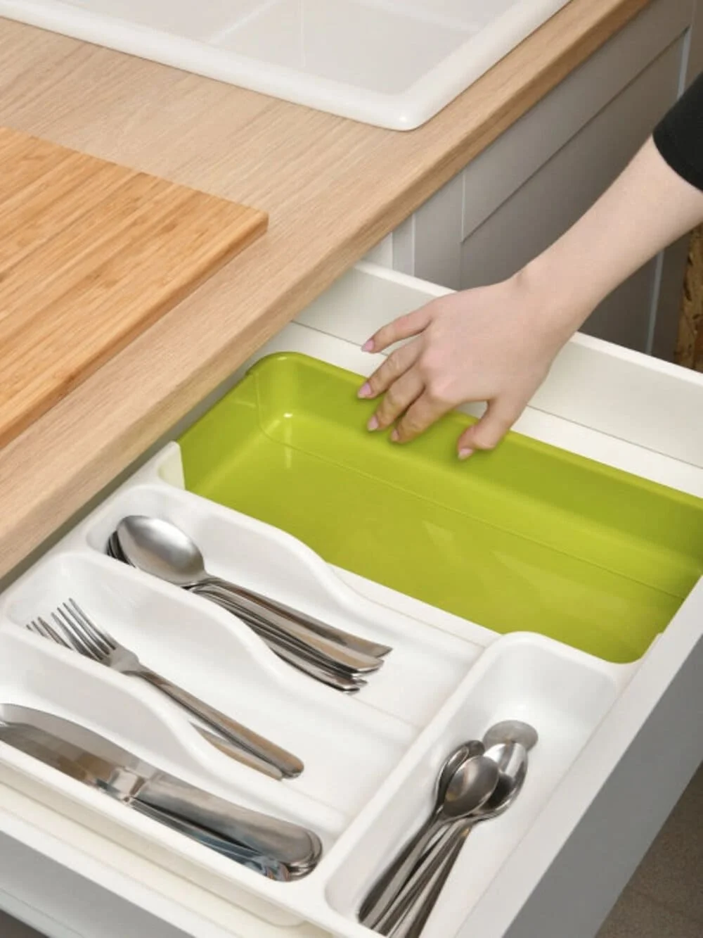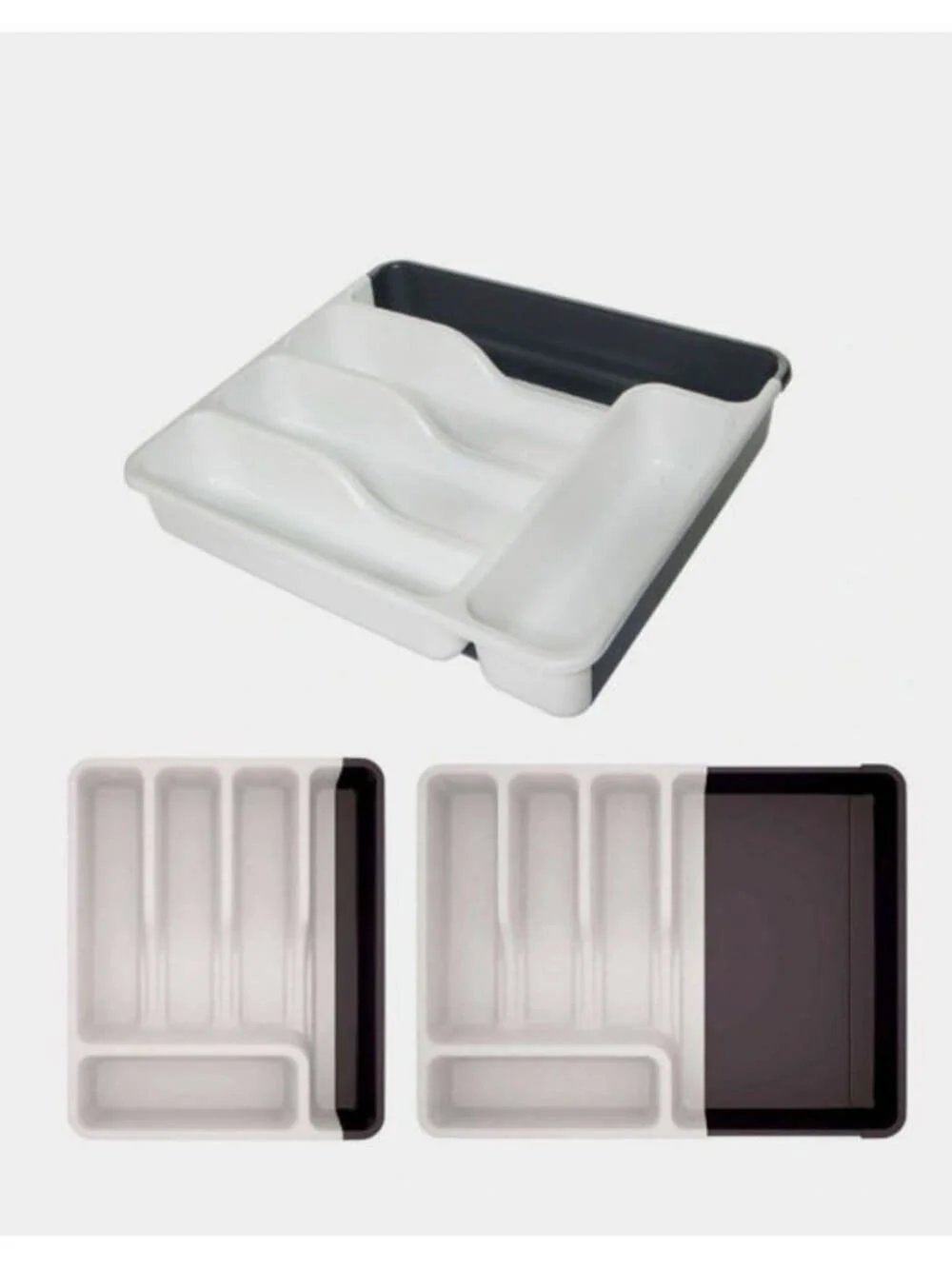 Раздвижной лоток органайзер для столовых приборов - подойдет для оптимизации кухонного пространства и придания стиля в мелочах. Благодаря раздвижному элементу - лоток можно расширить, тем самым увеличив его зону применения и используя его под любой тип ножей и/или других кухонных предметов. Лоток оснащен 5 функциональными отделениями, одно из которых - регулируемое по ширине. Размеры: в сложенном виде Ш 31 см х36 см , в раздинутом виде Ш 52 см х 36 см..