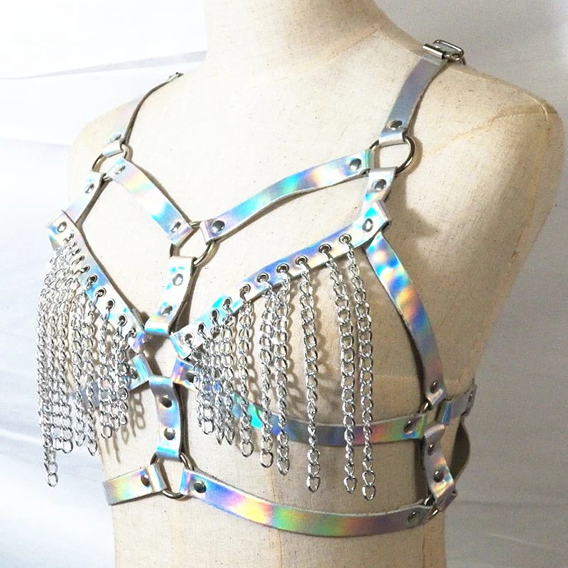 Кожаный ремень безопасности цепь тела Связывание Белье сексуальное готическое регулируемое клетка бюстгальтер танцевальный фестиваль Хэллоуин одежда в стиле панк для женщин