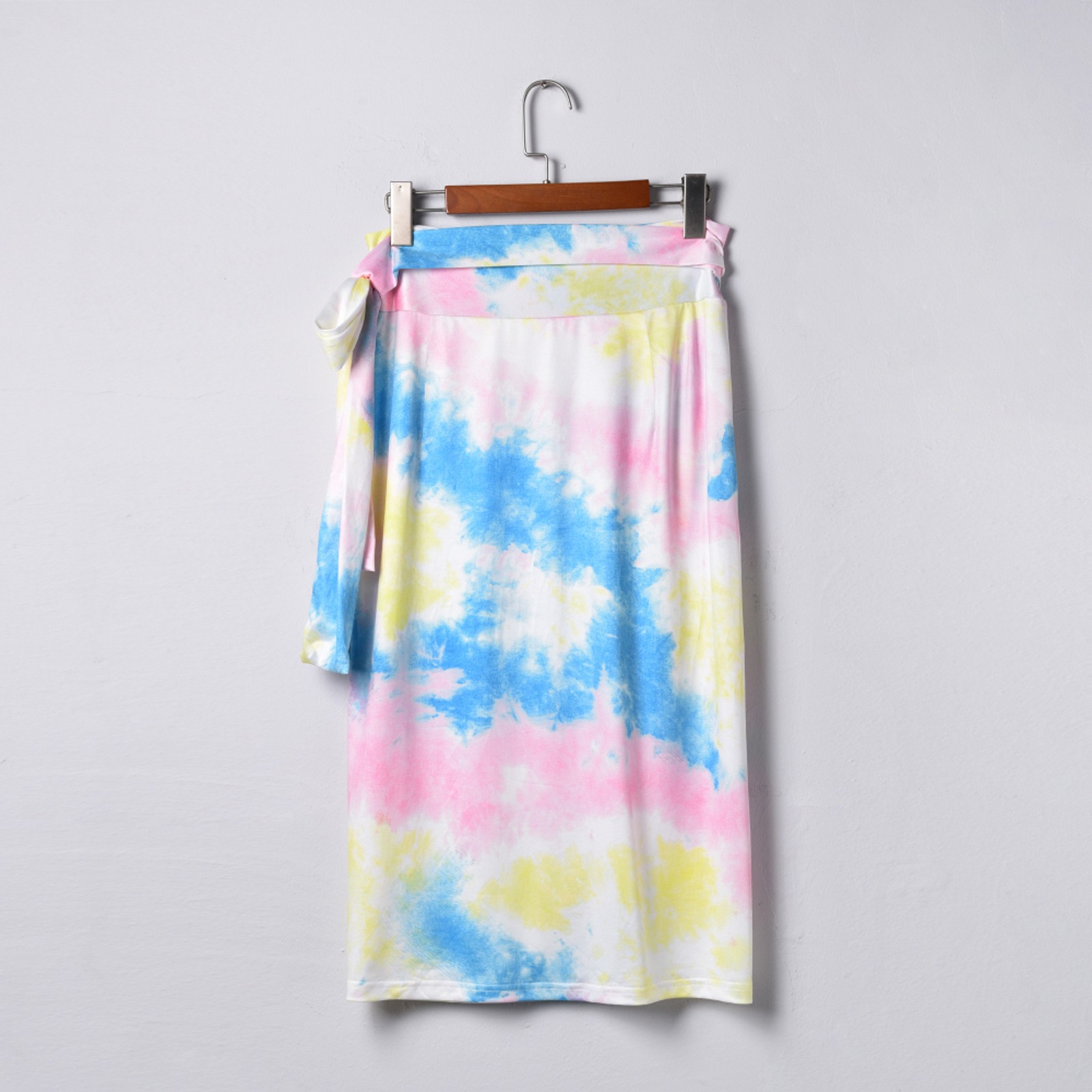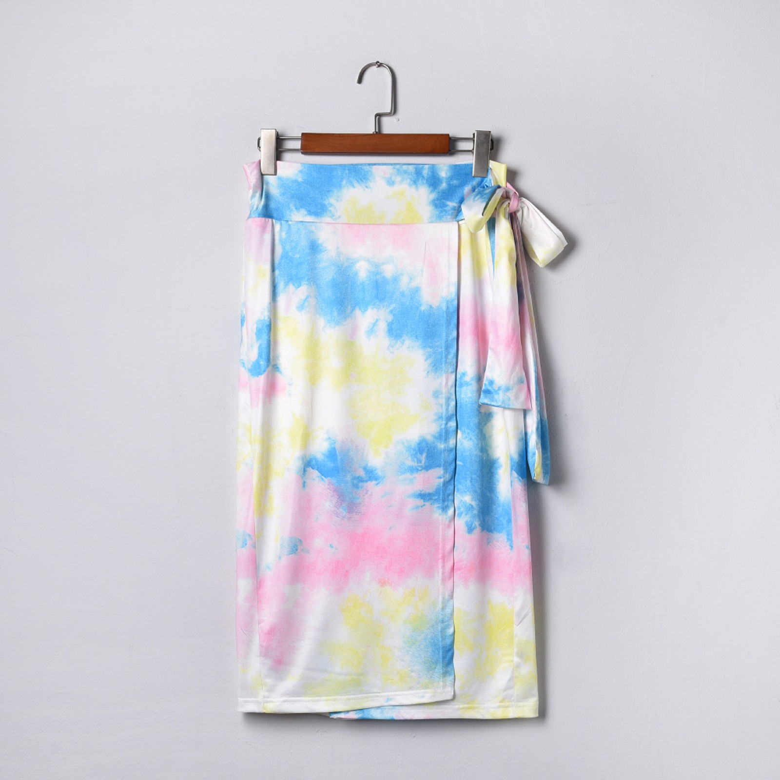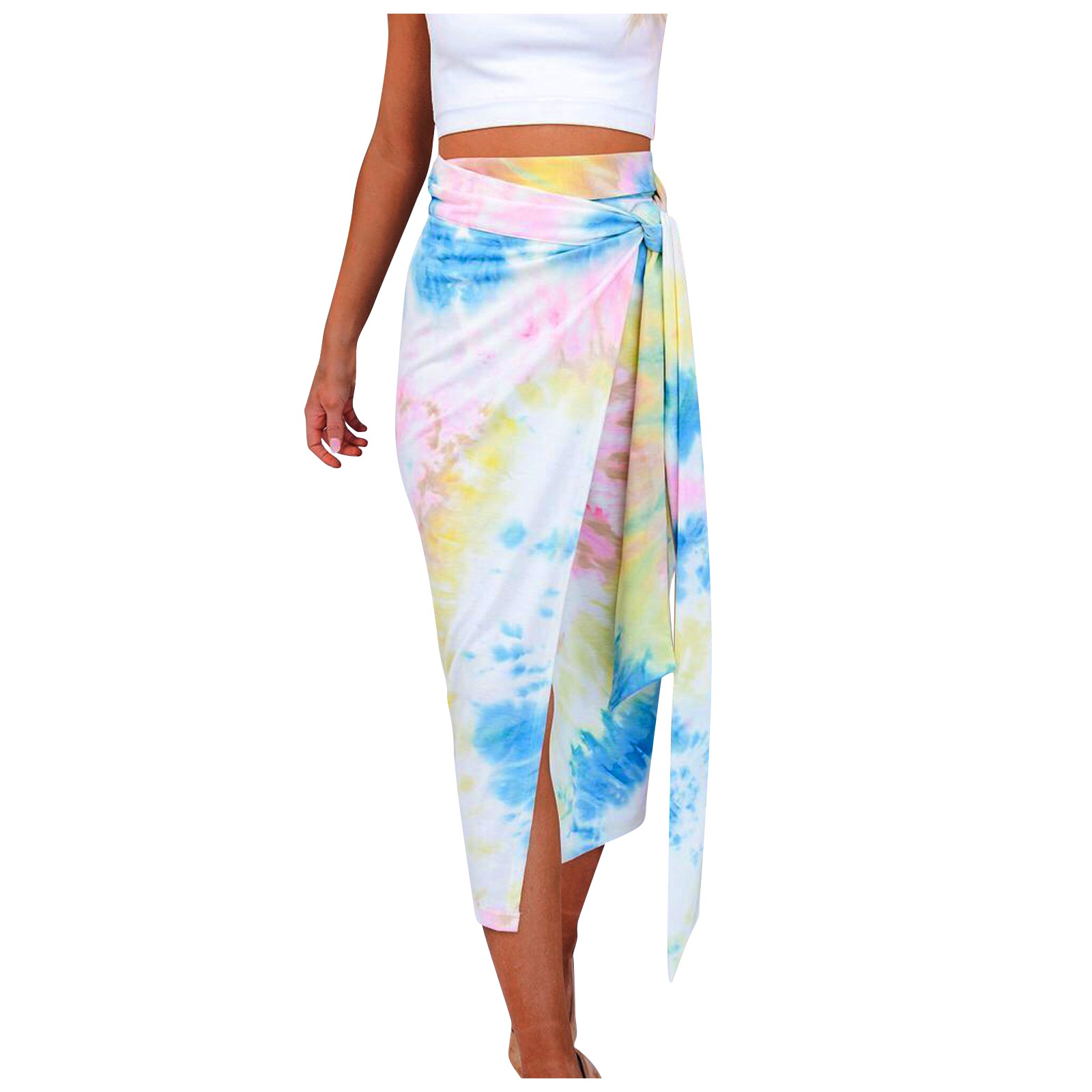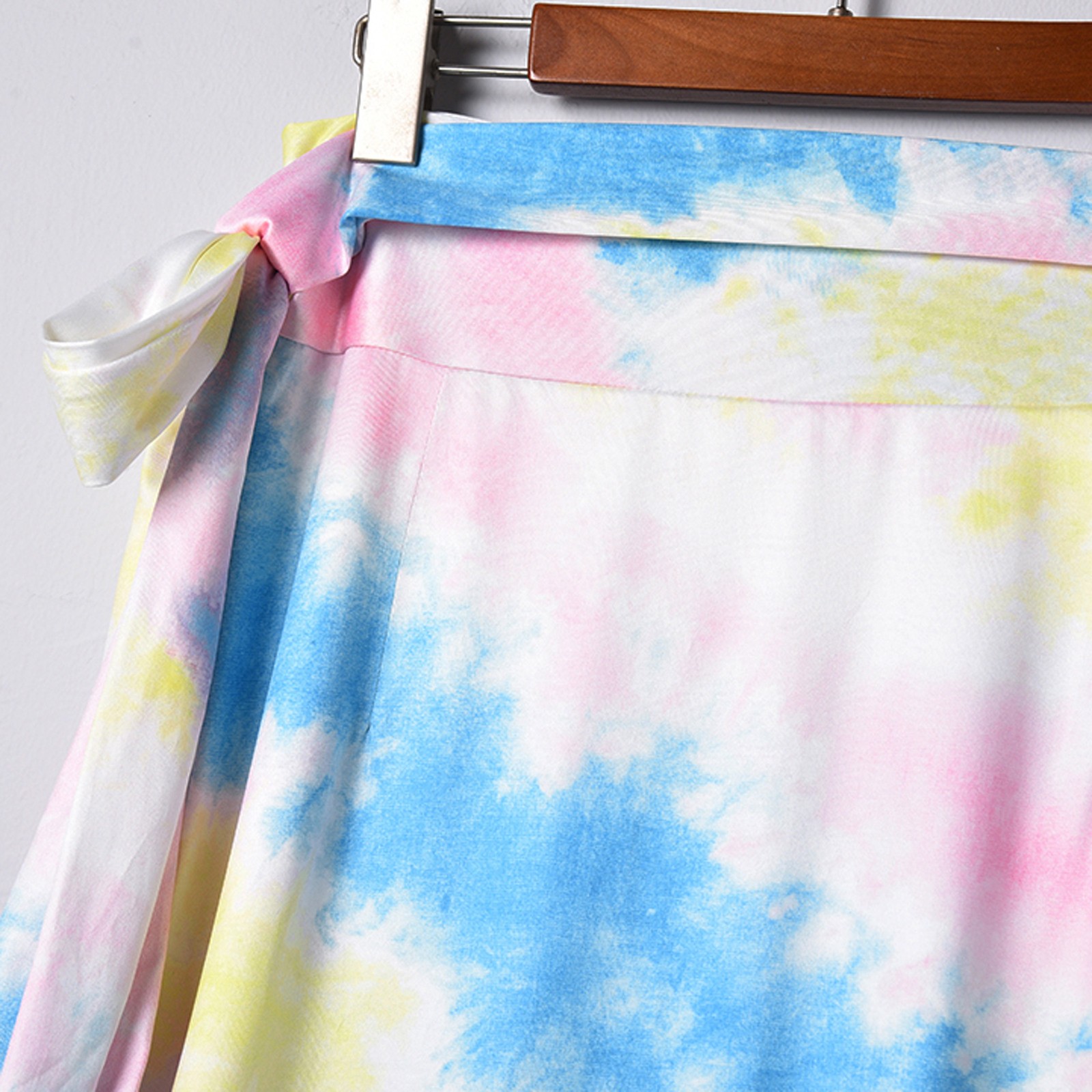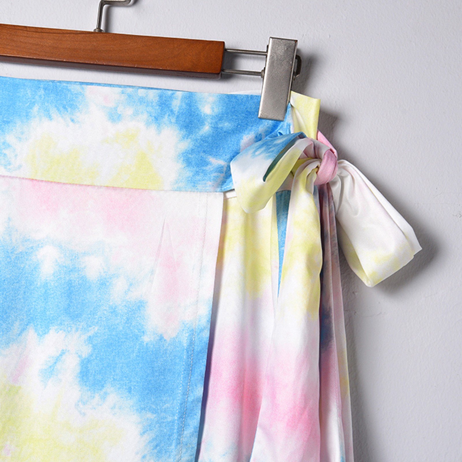 Модная женская юбка на шнуровке с высокой талией и принтом красителя