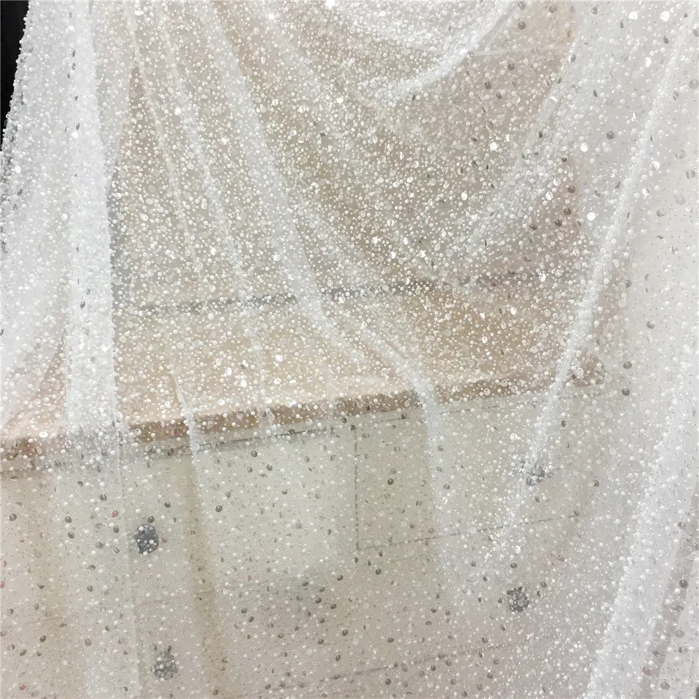 Ширина около 145 см, полны пайеток, бусин и жемчуга, очень тяжелые, изящные цвета слоновой кости Цена указана за один размер, другие покупки будут вырезаны как одна штука Высокая мода свадебное платье ткань, идеально подходит для свадебного платья, свадебное платье, высокая ткань от-кутюр, подиумная ткань, костюмы в винтажном стиле.