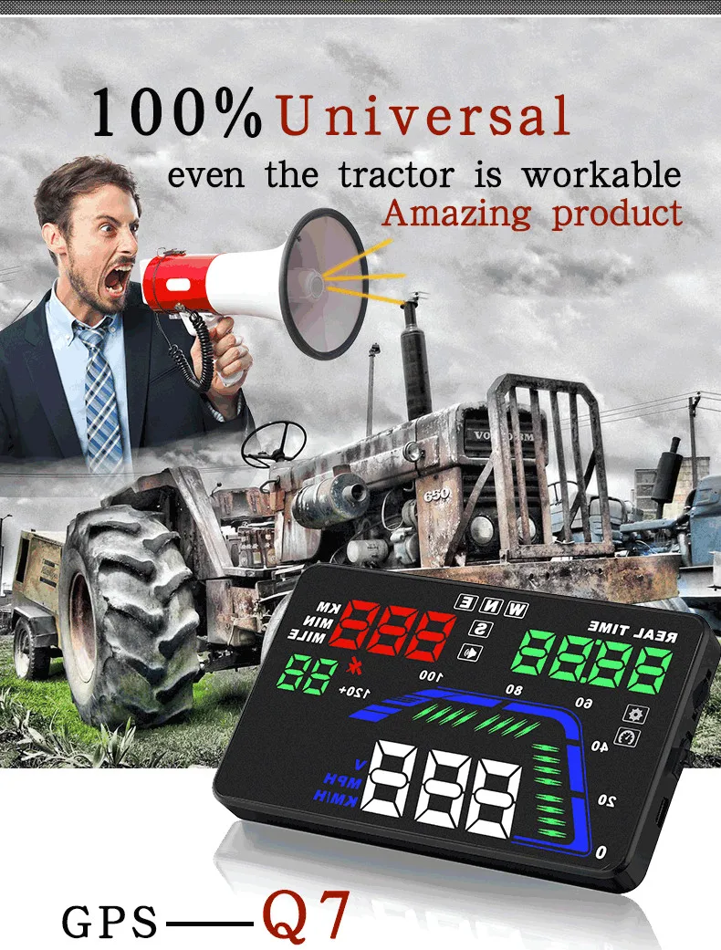 Новый Q7 5,5 дюймов Автомобильный HUD GPS дисплей с головкой Универсальный Спидометр превышение скорости Предупреждение приборной панели лобовое стекло проектор