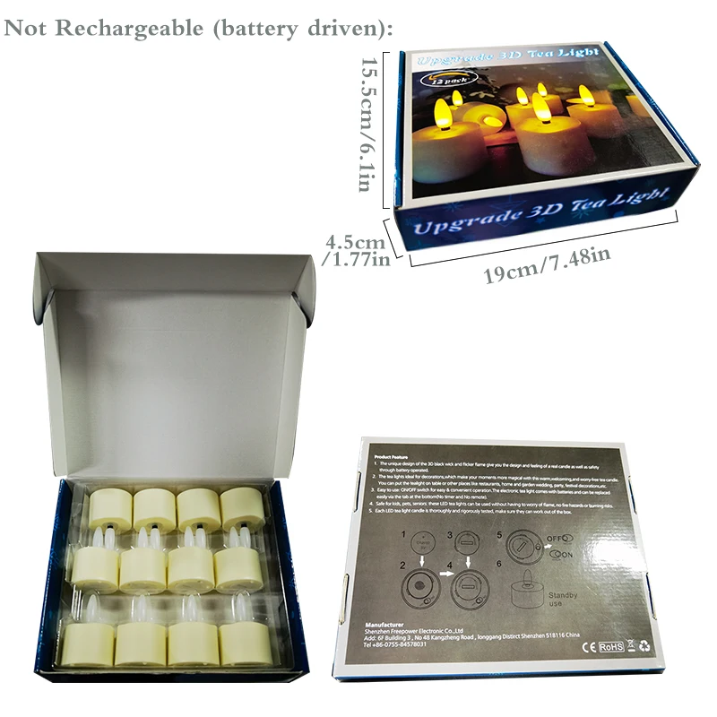 Aset 12 свечей USB заряжаемый чайный светильник/питание от аккумулятора