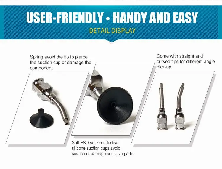 · Ручной инструмент для вакуумного захвата SMD идеально подходит для захвата и перемещения большой или небольшие электронные компоненты.