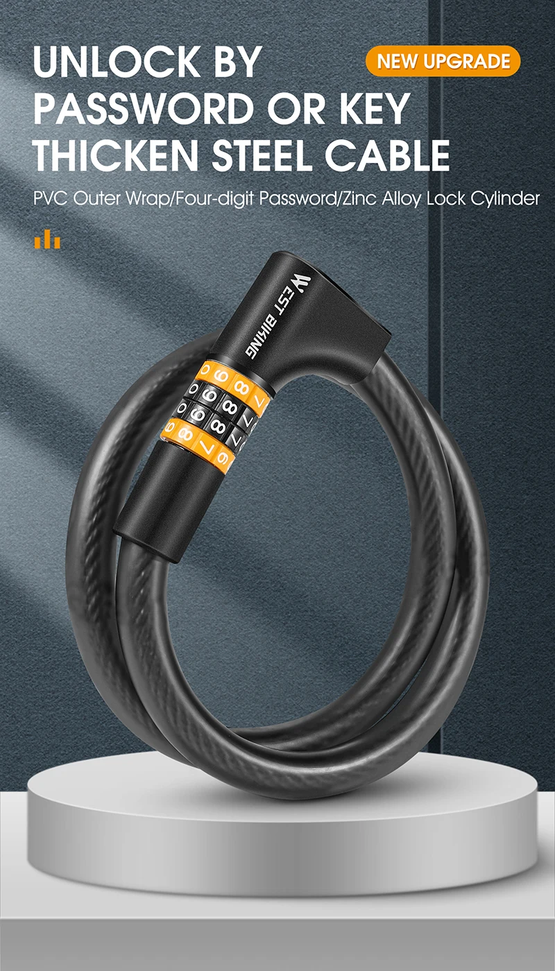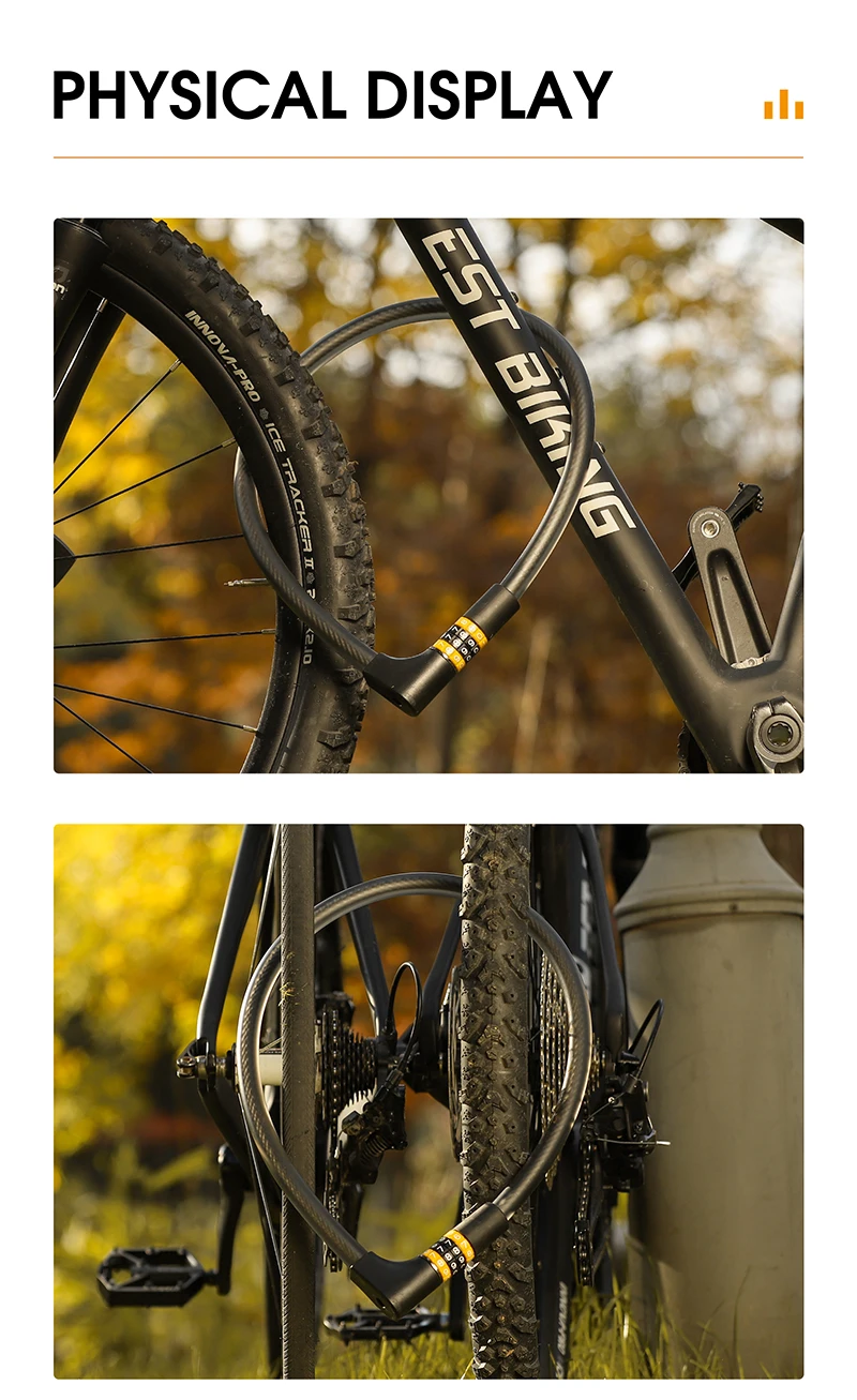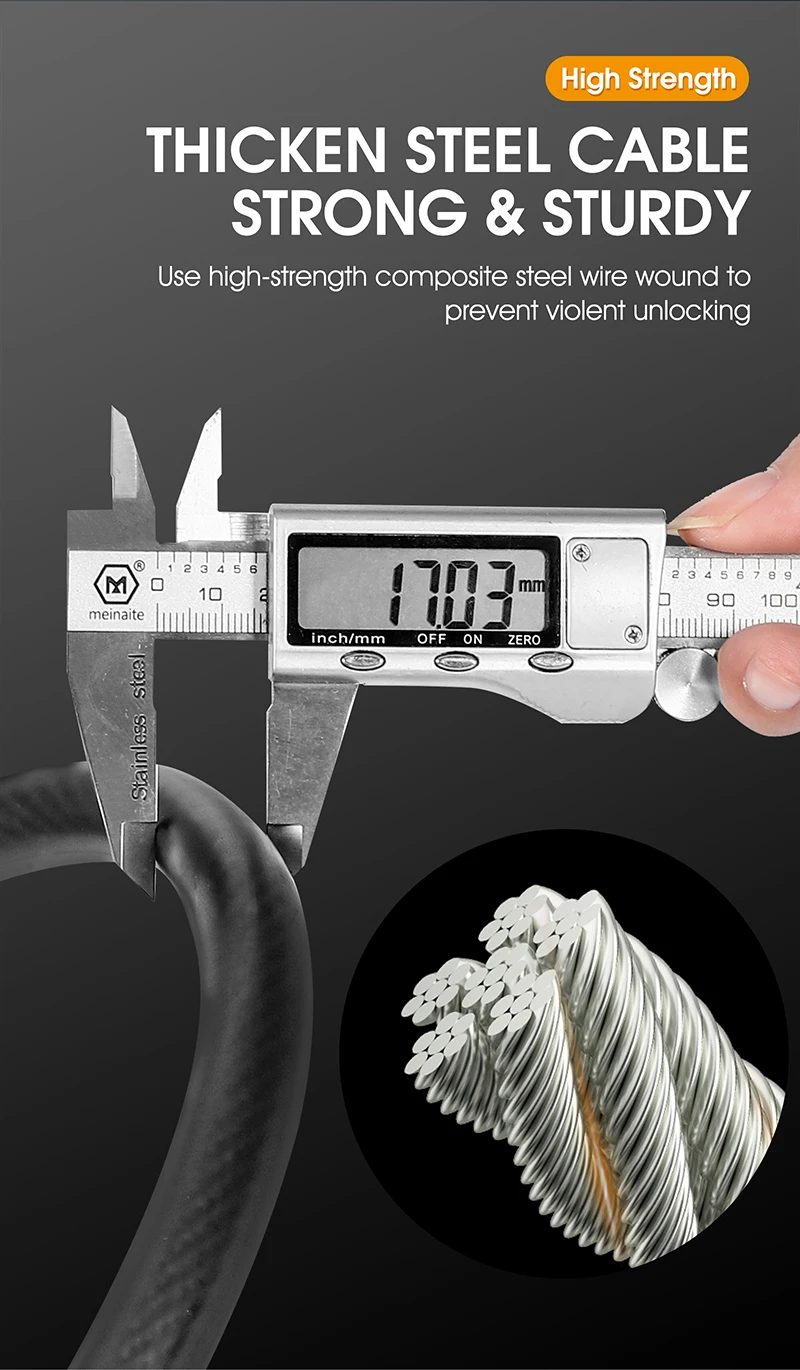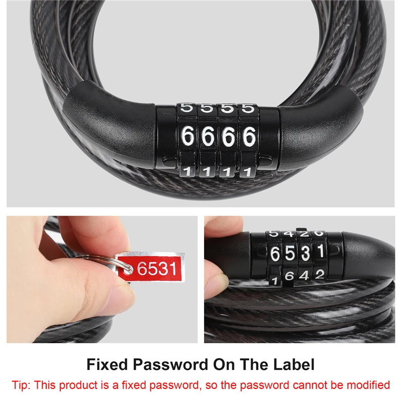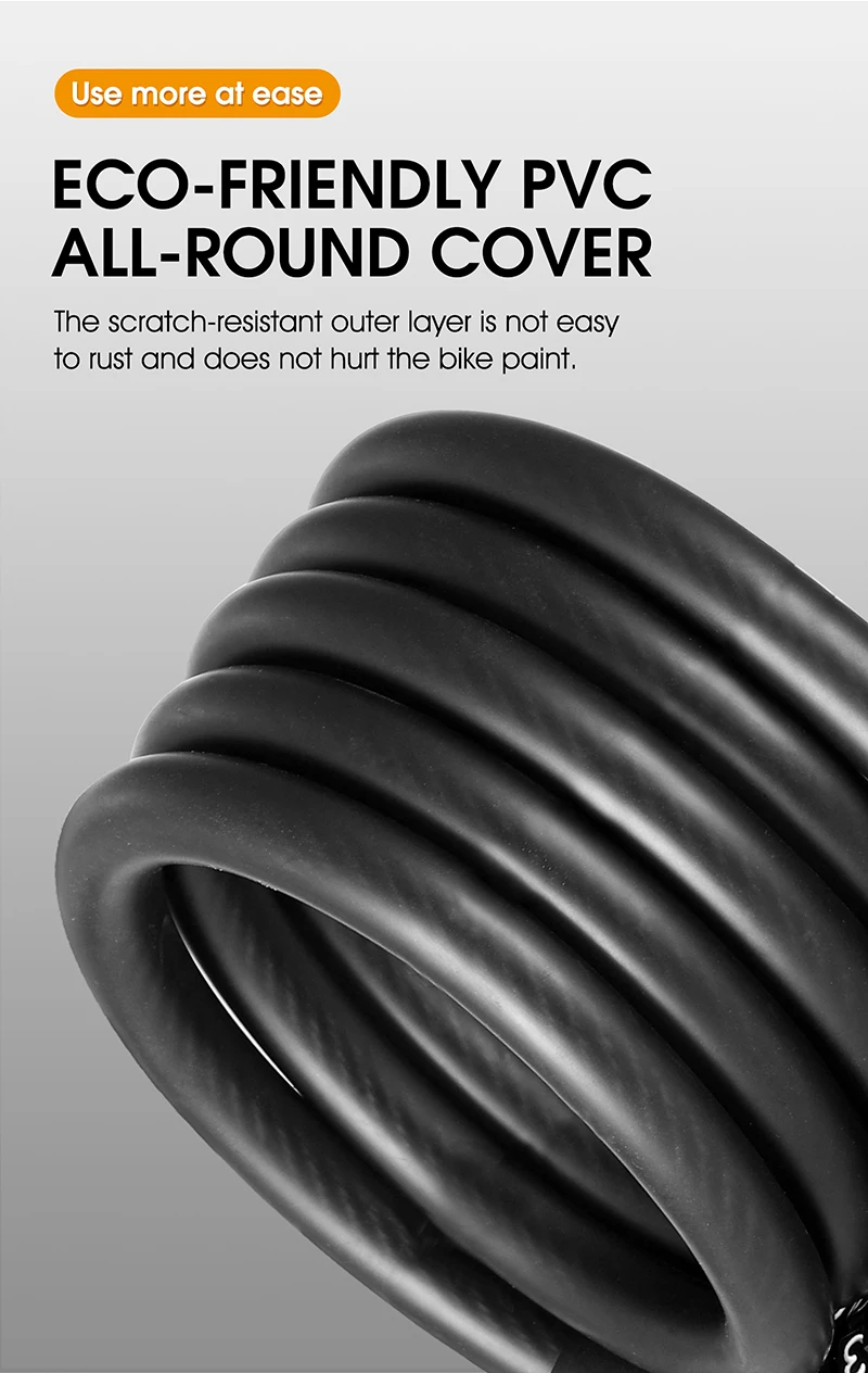 3. High-quality and durable materials - The built-in code lock is made of solid steel cable and the cable is made of environmentally friendly PVC. The locking structure is made of zinc alloy, and the surface of the lock rope is electrophoretic black, which makes the lock more durable and provides you with safer protection and better anti-theft effect.