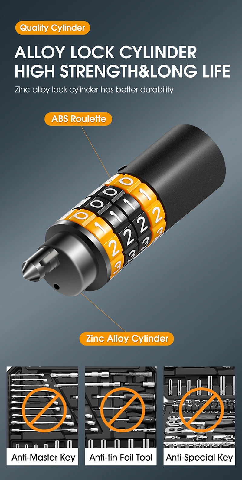 1. 4 or 5-digit resettable password - lock with up to 10,000 password combinations for extra security;