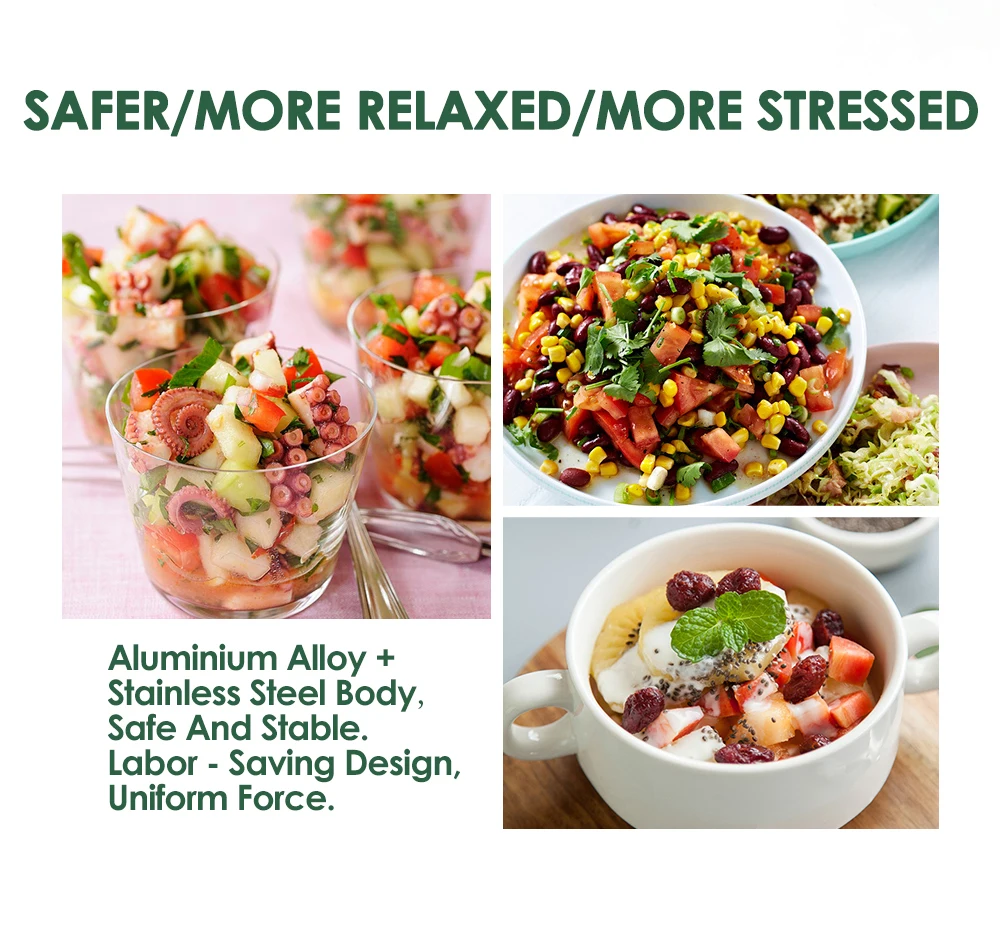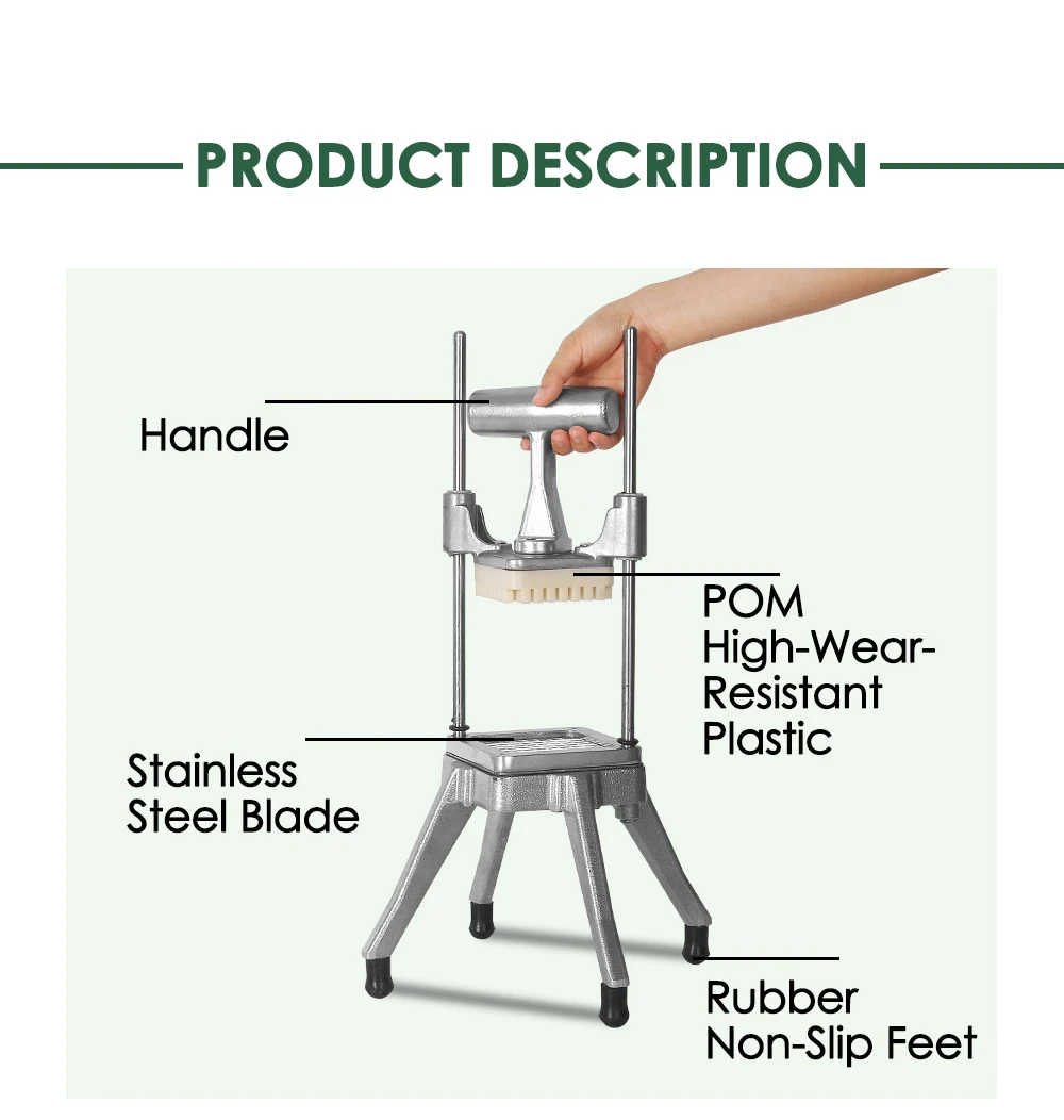 Применение: подходит для нарезки картофеля, огурцов и других овощей в виде полосок. Слоеное Помидоры также можно разрезать на кубики с помощью этой машины.