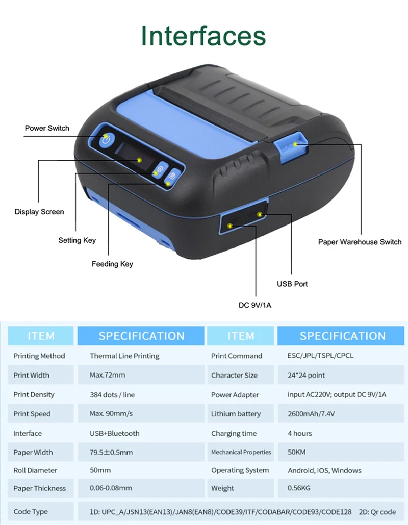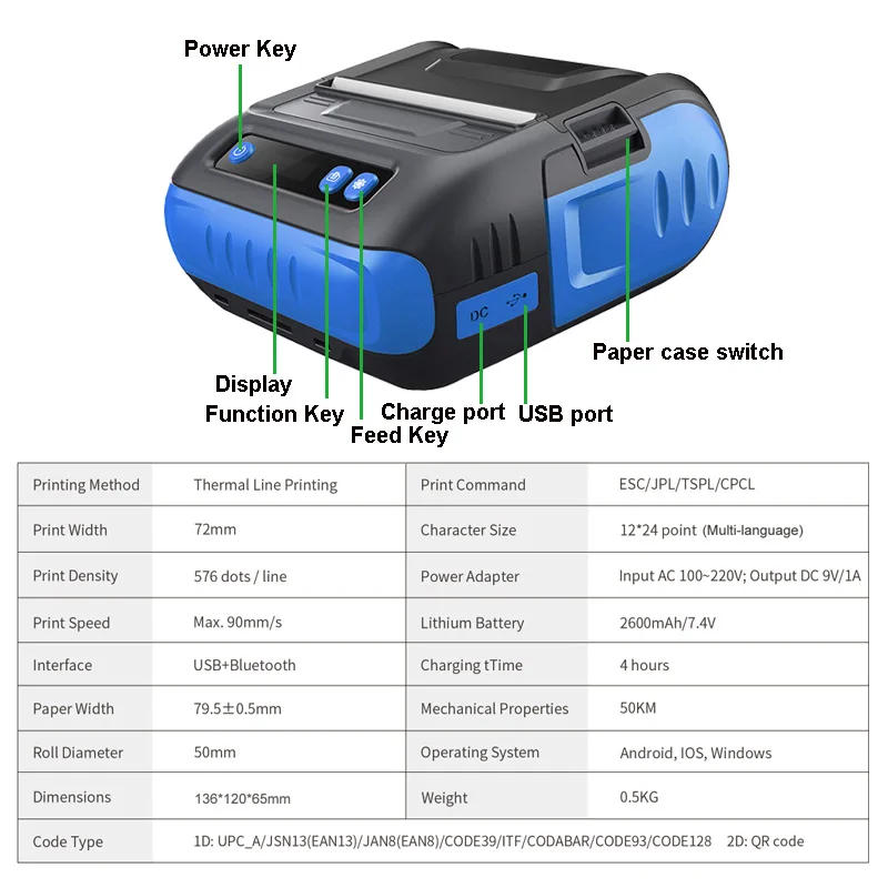 Термопринтер 3 дюйма квитанция/этикетка 2 в 1 POS принтер 80 мм Bluetooth Android/iOS/Windows для малого бизнеса