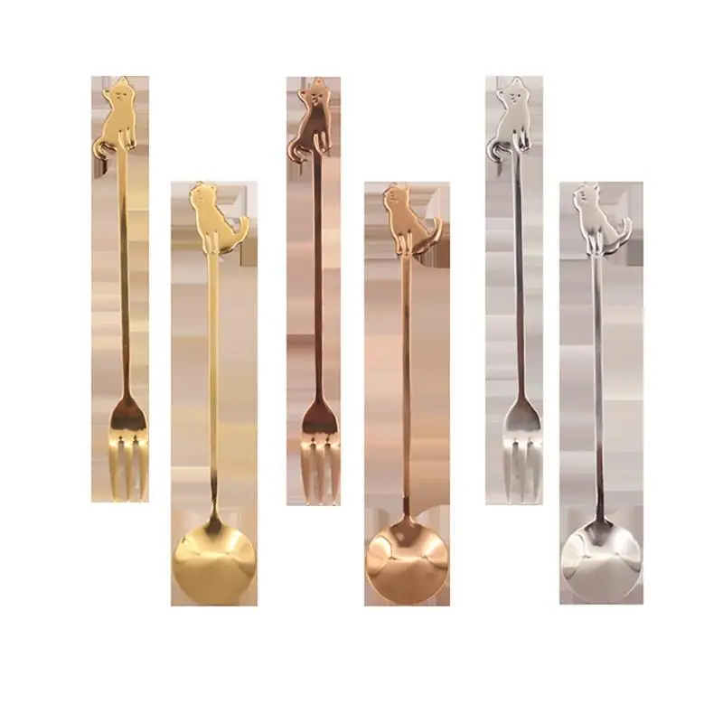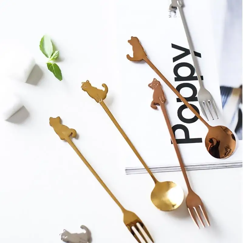 Настольная посуда из нержавеющей стали Креативный дизайн кошки десертная кофейная ложка Вилка