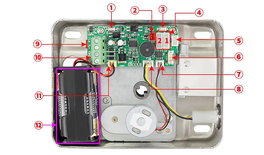Металлический замок использует 4 батареи AA 1,5 V