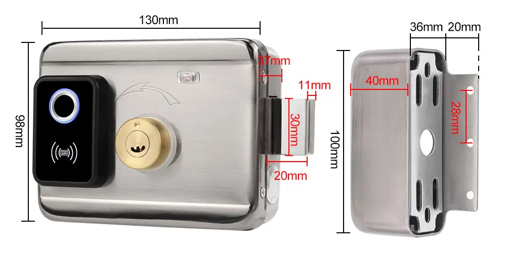 Доступны отпечаток пальца, пароль, RFID-карта и механические ключи