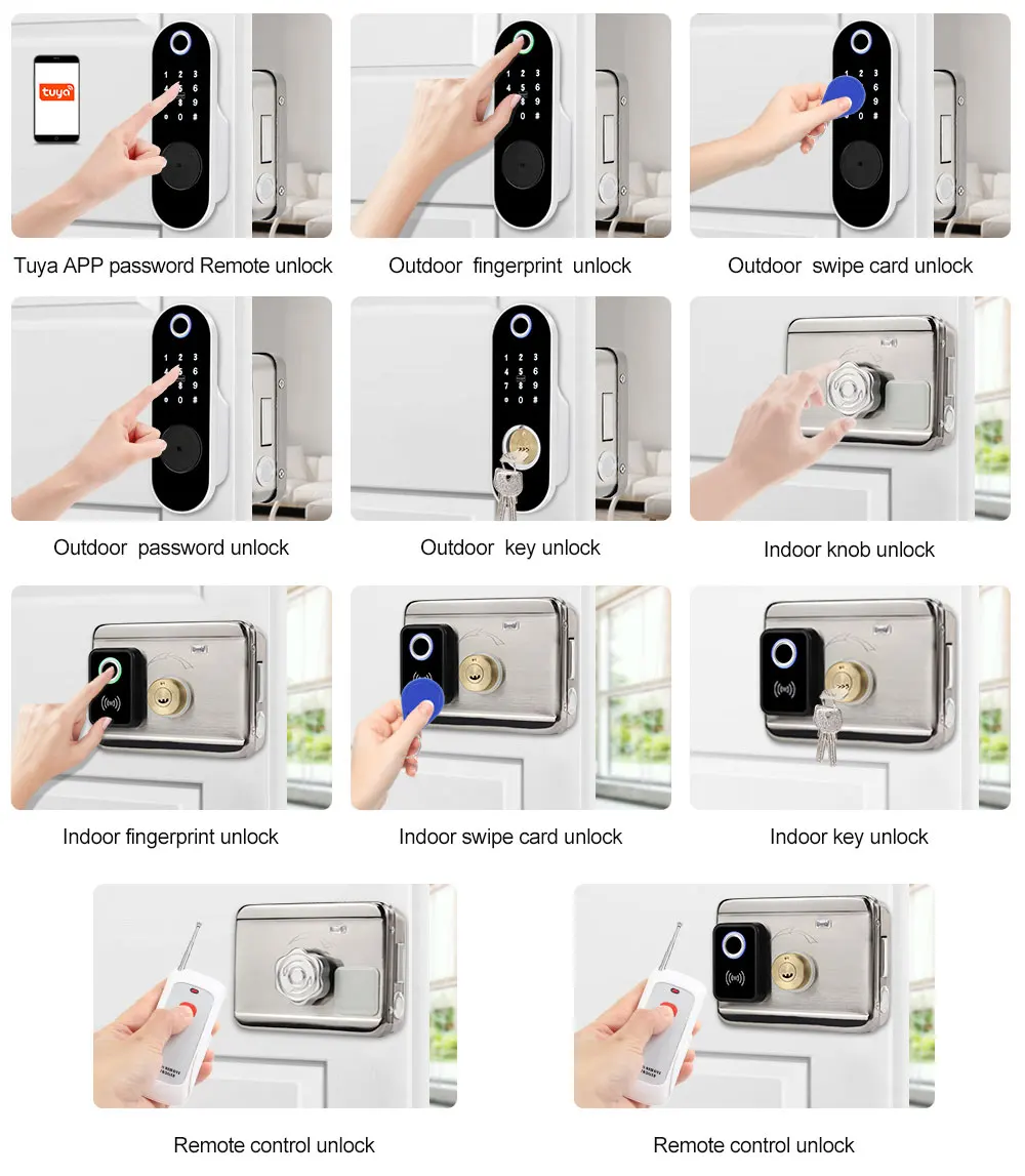 Отпечаток пальца/Пароль/RFID-карта/приложение Tuya/пульт дистанционного управления