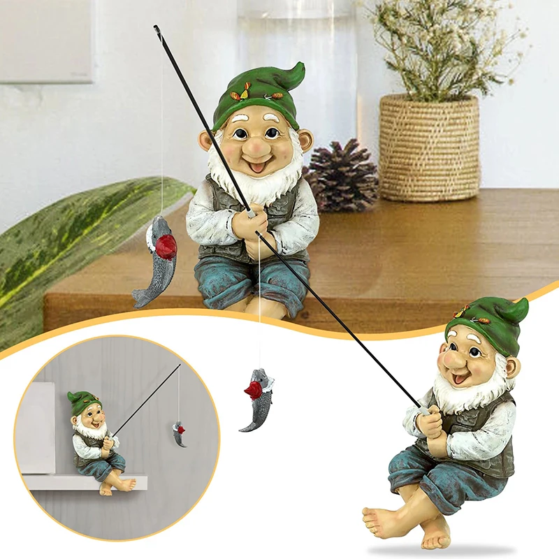 1. Рыбалка GNOME-давайте быть большим человеком! Наш Садовый Гном готов сидеть на краю вашей садовой стены или пруда в любое время и поймал маленькую рыбу с красной шляпой и пигмой бородой.