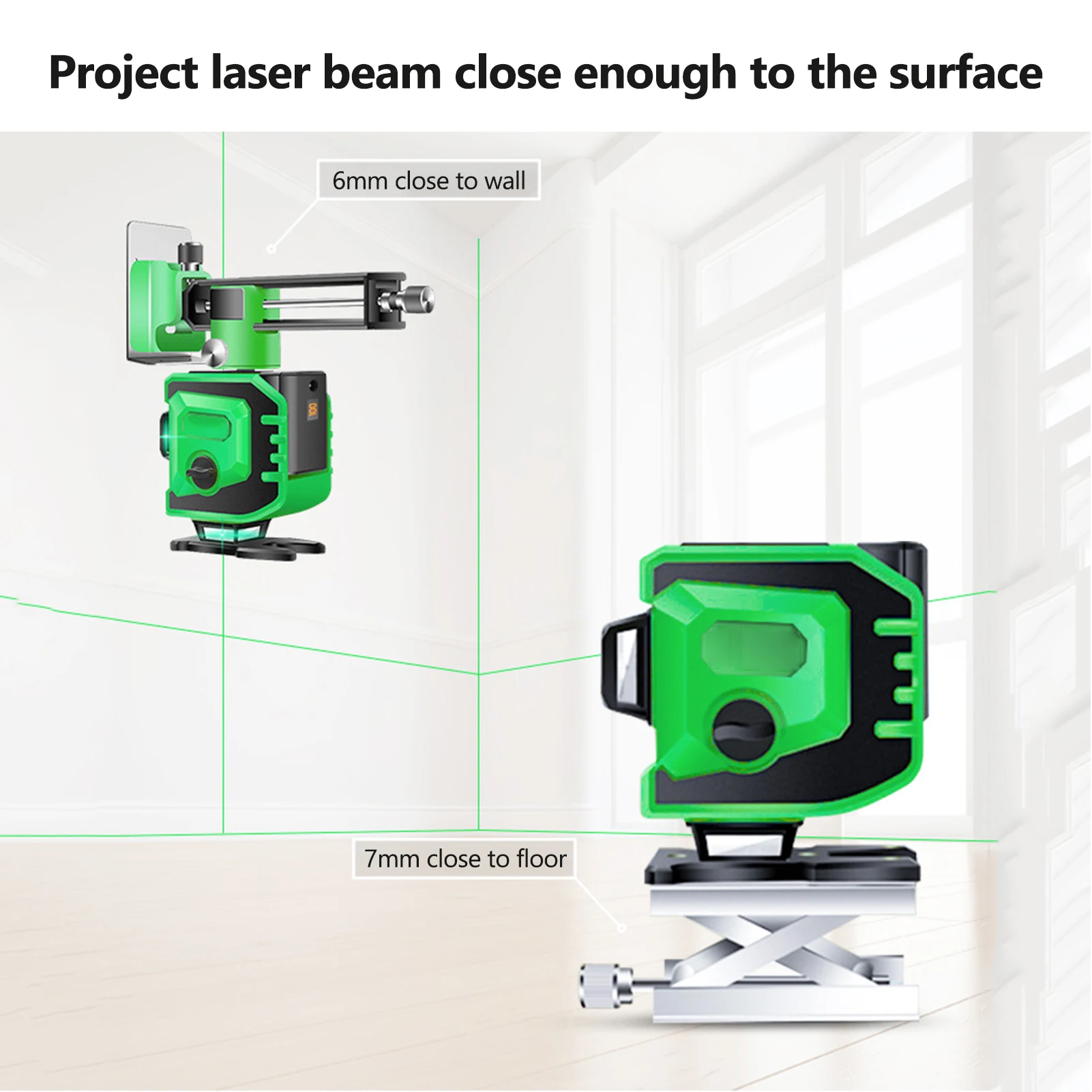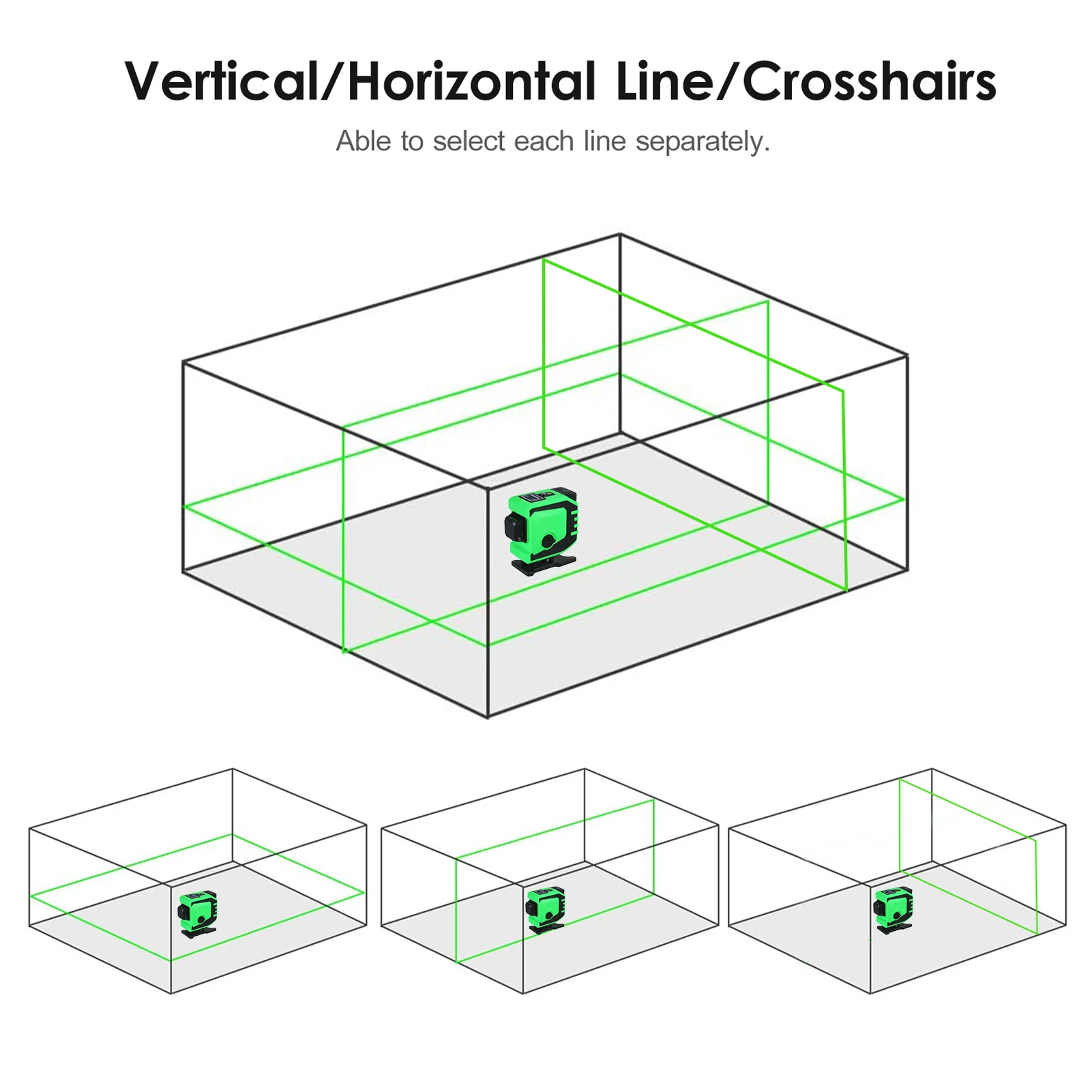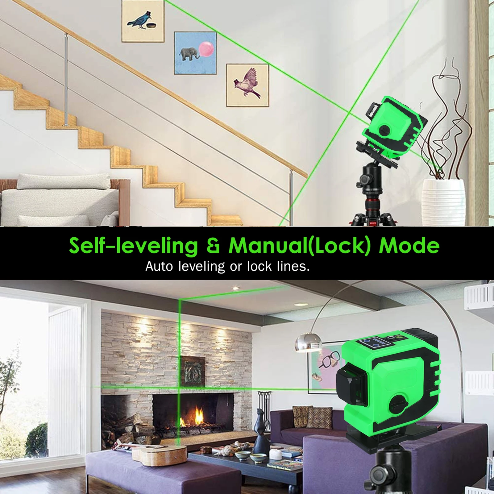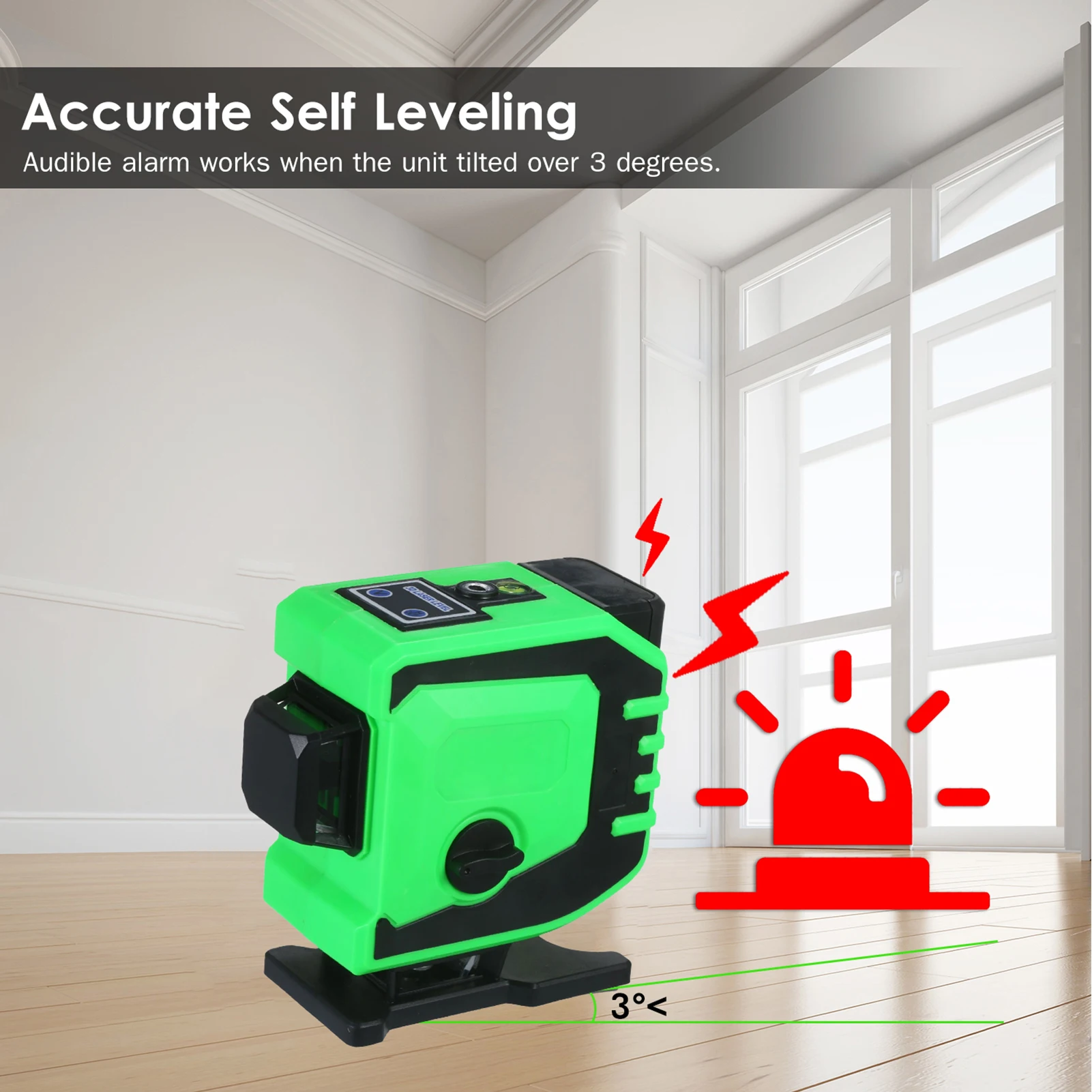 Лазерный уровень обладает самовыравнивающейся способностью, точной регулировкой на 360 градусов и супер ярким зеленым лучом, который хорошо виден на улице. Он может выстраивать вертикальную, горизонтальную и поперечную линию на расстоянии до 82 футов, а также поддерживает пульт дистанционного управления, незаменимый инструмент для подвешивания картин, полок или кондиционеров, строительства зданий, внутренней отделки, DIY комнаты проекты и т. Д.
