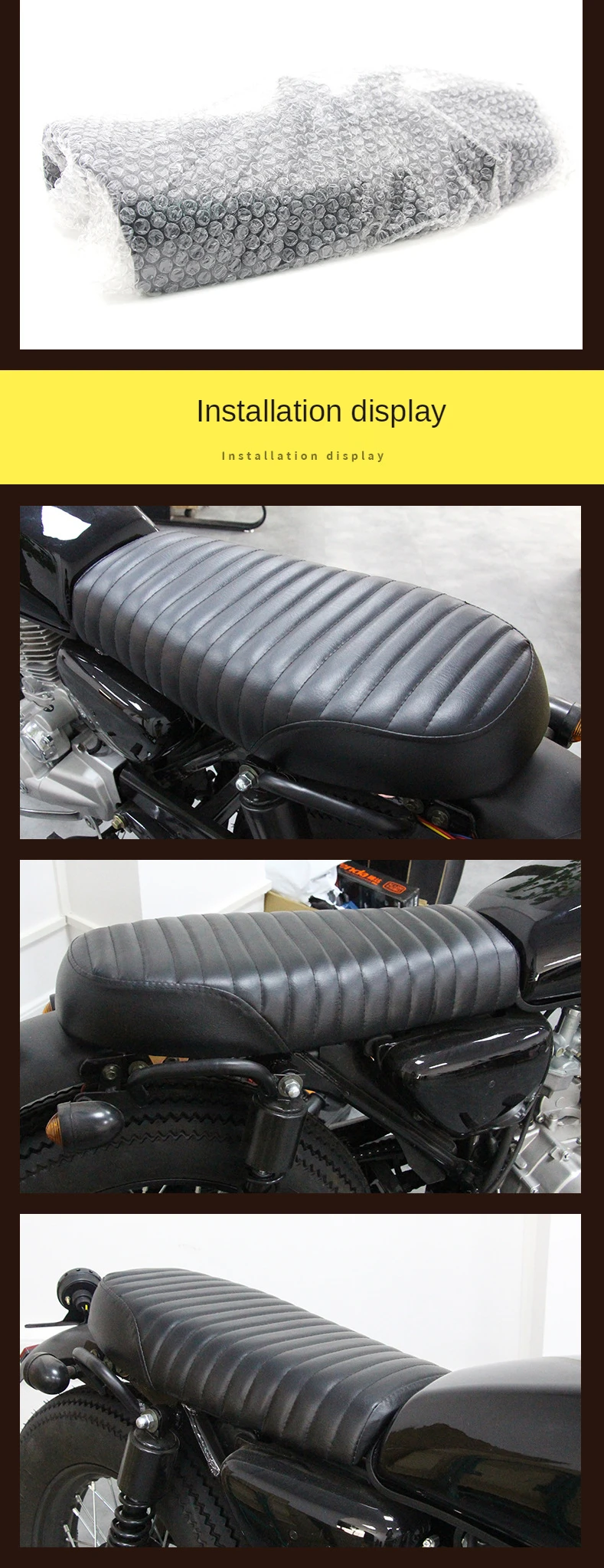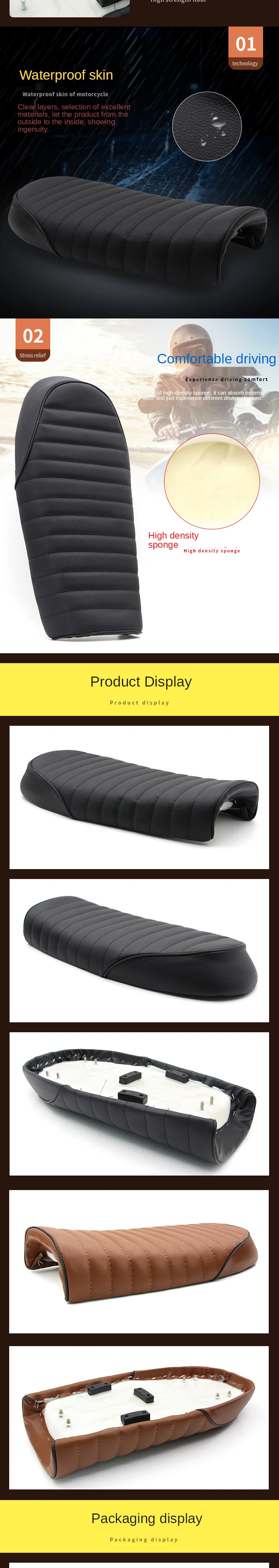 Описание: Ретро модернизированная, водонепроницаемая сумка на ремне с пряжкой Название: Новое высокопроизводительное сиденье Материал: высокопрочная Нижняя пластина + губка высокой плотности + водонепроницаемая кожа + Ультратонкий ретро-стиль Цвет: коричневая кожа высокого качества, черная окантовка Преимущества: эффективная водонепроницаемая, тонкая кожа, мягкая и удобная Размер: длина 53 см * ширина 24,8 см * высота 12 см Особенности: Винтажное мотоциклетное кафе гоночное сиденье Прочная, водонепроницаемая, Высококачественная мягкая кожа -Нежная кожа: прозрачная текстура, удобная на ощупь и Особенная индивидуальность. -Тщательная окантовка: Высококачественная качественная окантовка, прочная прочность, более устойчивая к сидению и не легко трескается -Высокопрочная Нижняя пластина выполнена из новых материалов, светильник вес, сильная, хорошая стойкость к ударным нагрузкам, и ее не так легко ржавчины. -Водонепроницаемая кожа: хорошо слоистые, отборные отличные материалы, так что продукт снаружи и внутри, показывает дух мастерства. -Комфорт вождения: Изготовлен из губки высокой плотности, он может поглощать внешнюю силу, и мягкость в самый раз, так что вы можете испытать различное удовольствие от вождения Вы будете иметь счастливое и удобное путешествие. Приспособление: Универсальный для Honda CG серии винтажные мотоциклы и т. Д.