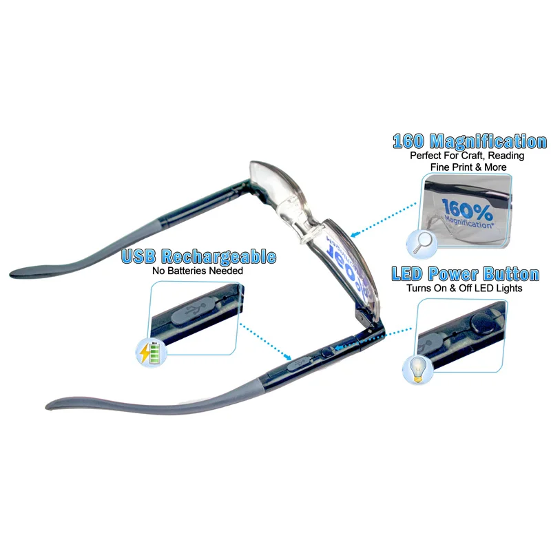 Никогда не нужны батареи, USB Перезаряжаемый, 160% увеличение светодиодный Очки