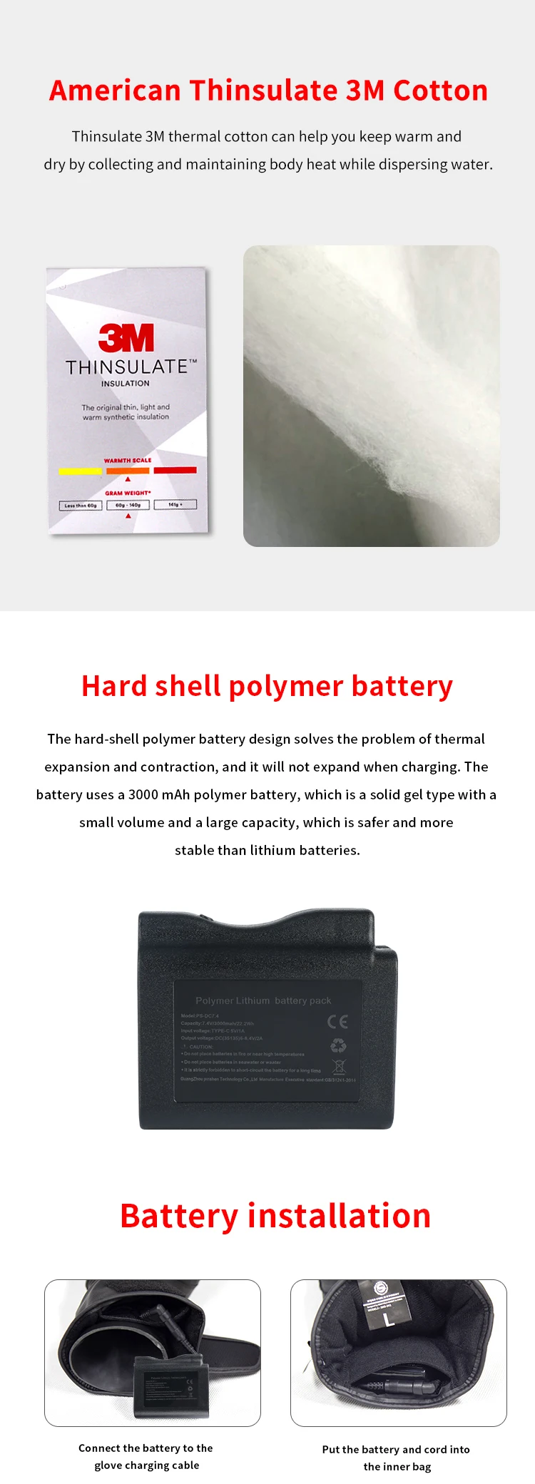 * Твердый корпус полимерный умный носимый аккумулятор, Номинальная емкость: 7,4 В/3000 мАч/22.2WH