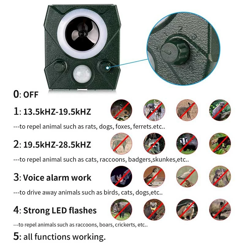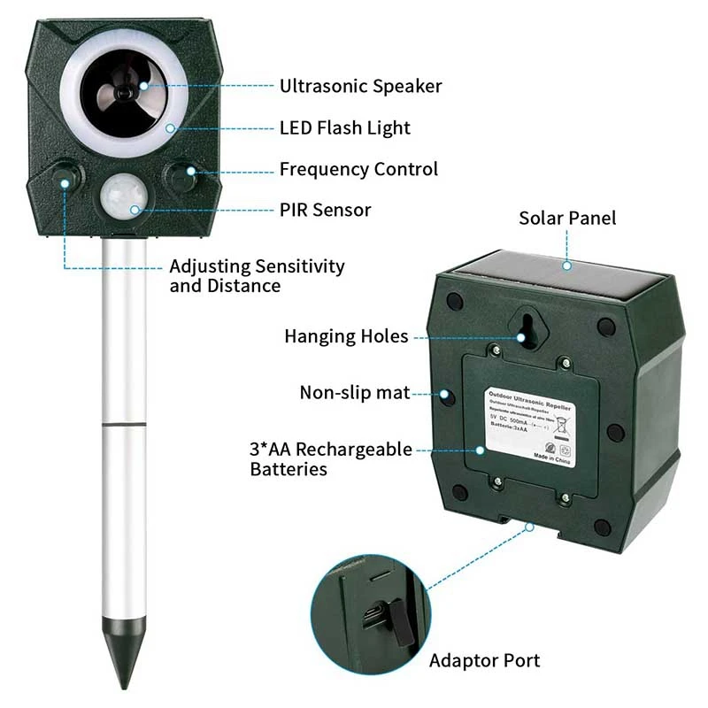[С питанием от солнечной энергии-распылитель для отпугивания животных] Отпугиватель москитов средство избавляется от всех животных и вредителей через излучающий смесь ультра sonic, sonic и мощный мигающий светодиодный стробирующий световой сигнал предупредительный сигнал, пугает вредителей/животных, чтобы выйти из области. Нет грязных химических веществ или пестицидов, нет ловушек, нет мертвых животных. Человека и окружающей среды.