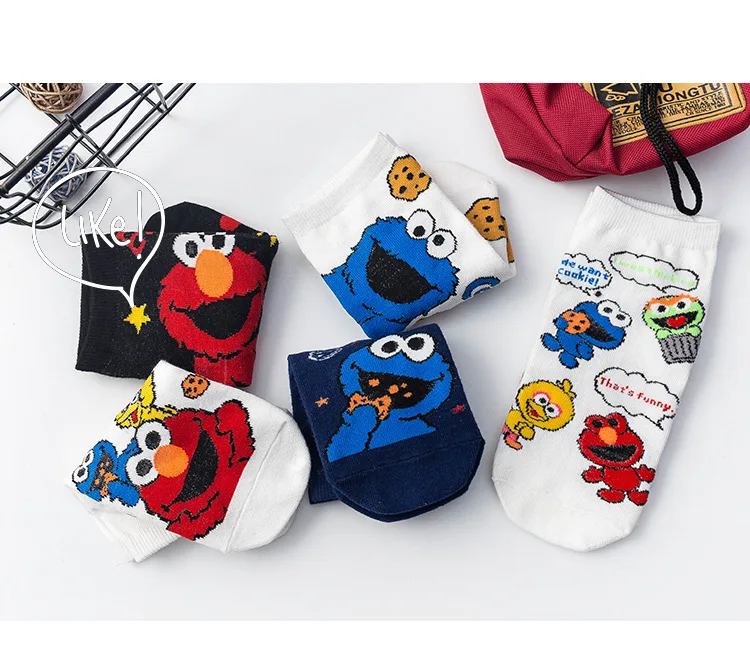 Женские носки для девочек; Хлопковые носки до щиколотки; Женские летние носки для костюмированной вечеринки с персонажами из мультфильмов «Улица Сезам»; Носки с монстрами из мультфильма «эльмо печенья»