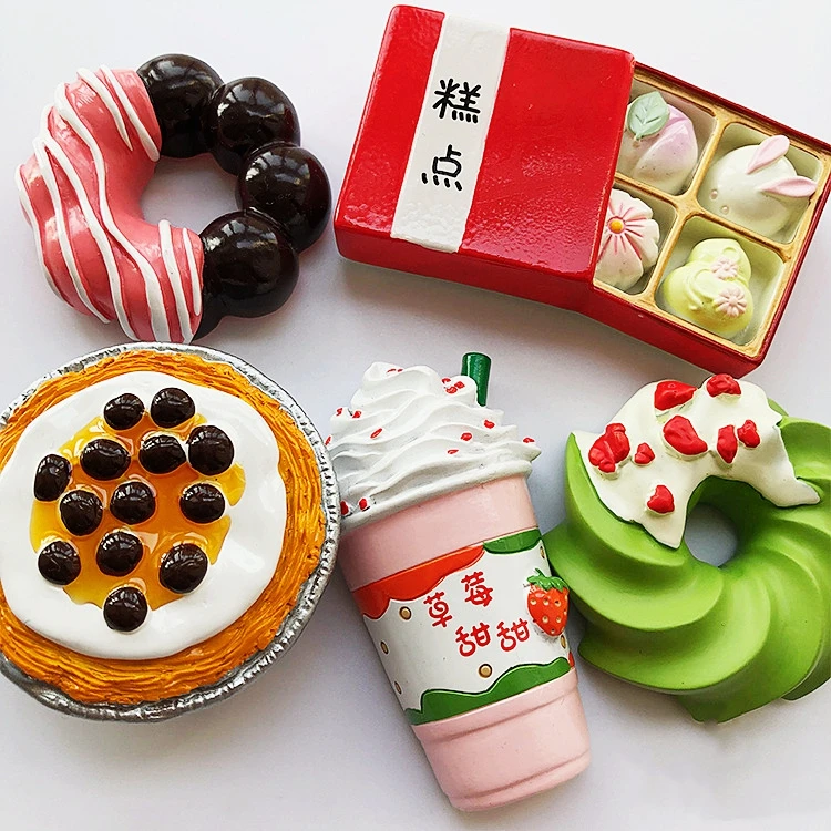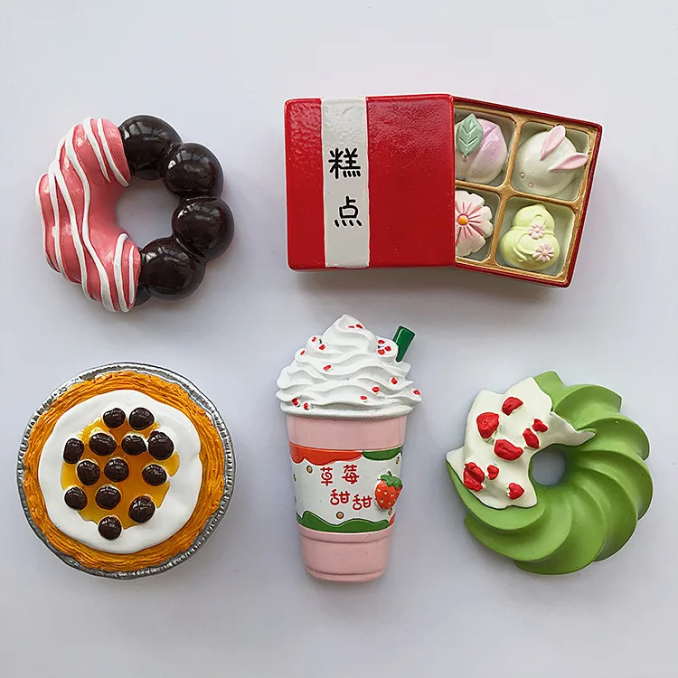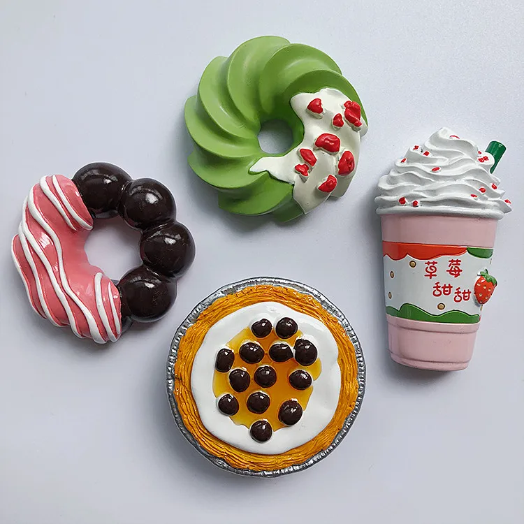Hand-painted Strawberry Ice Cream Donut Egg Tart 3D Fridge Magnets Souvenirs Refrigerator Magnetic Stickers Gift