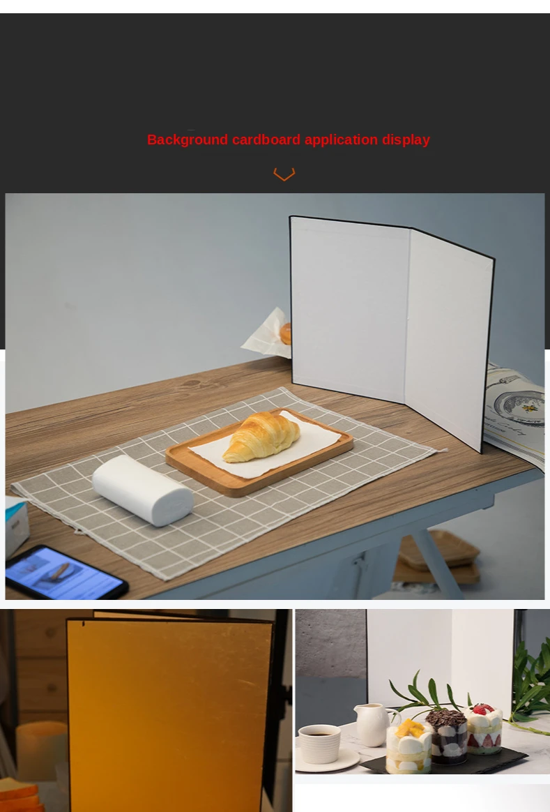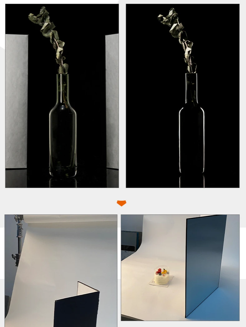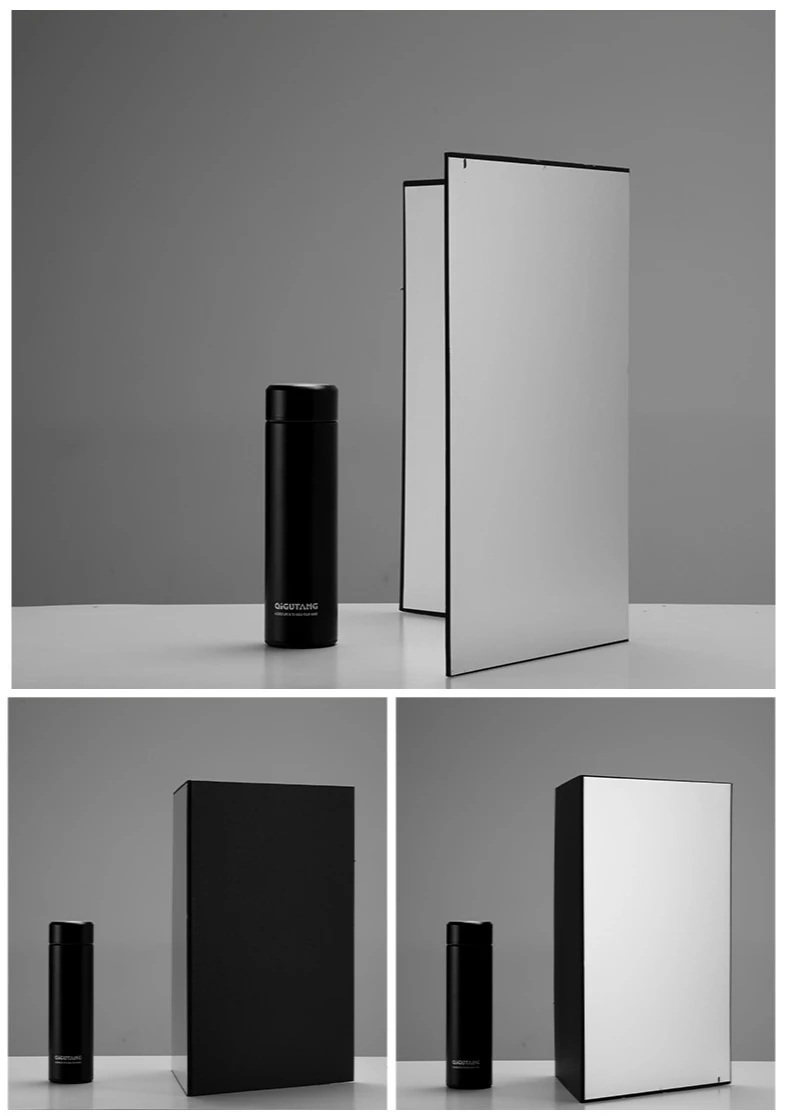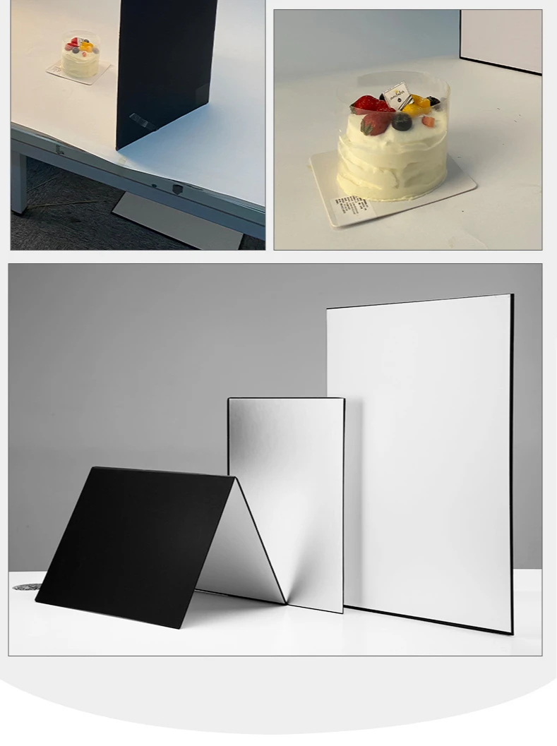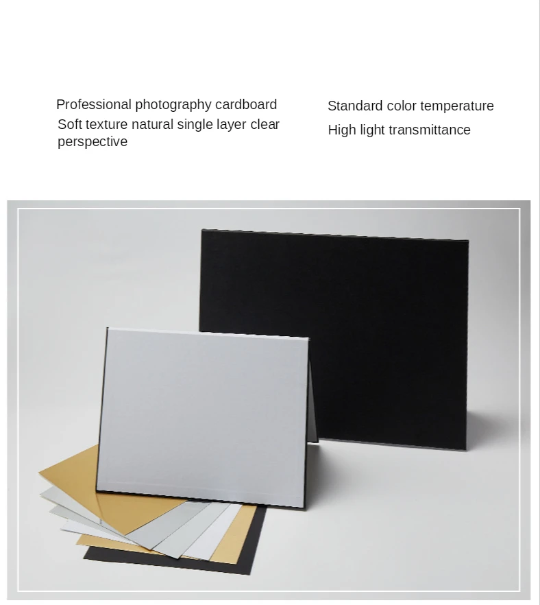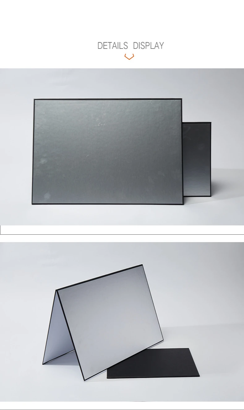 Описание продукта: Название продукта: складной картон Толщина изделия: 3,6 мм Материал изделия: картон Вес изделия: около 0,4 кг Размер А3: 290 мм × 420 мм (после складывания) 580 мм × 420 мм (открытие) Размер А4: 285 мм x 205 мм (после складывания) 410 мм x 285 мм (открытие) Особенности: 2 стороны и 3 цвета (1 серебристый, 1 черный, 2) белый) Серебряная поверхность ------- для отражения Черная поверхность -------- для поглощения светильник Белая поверхность --- используется для заполнения светильник Подходит для: фиксированных объектов и портретов Посылка ходит: