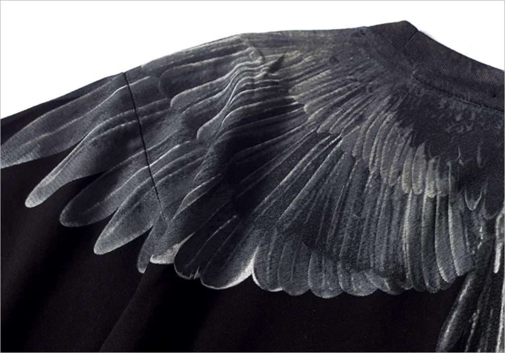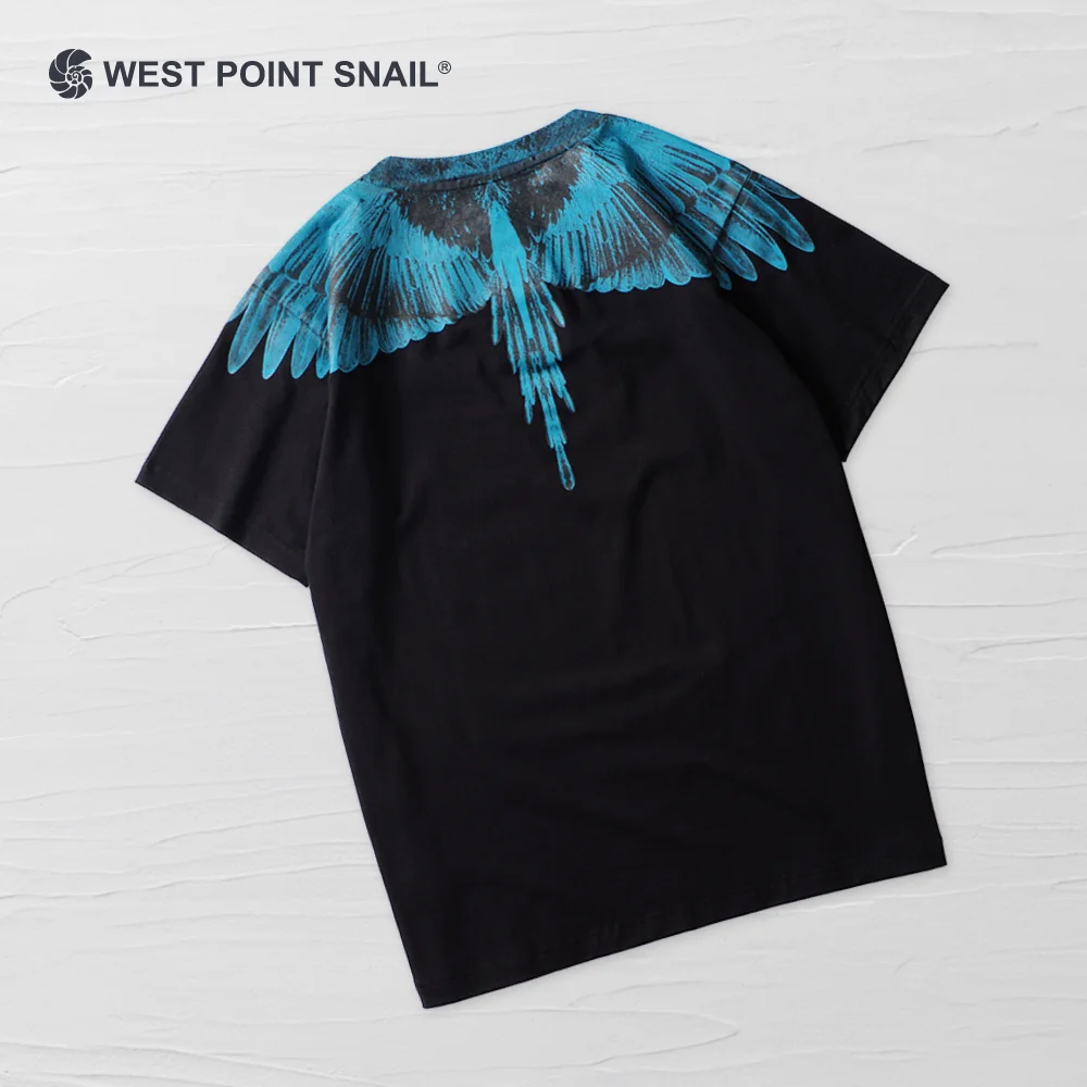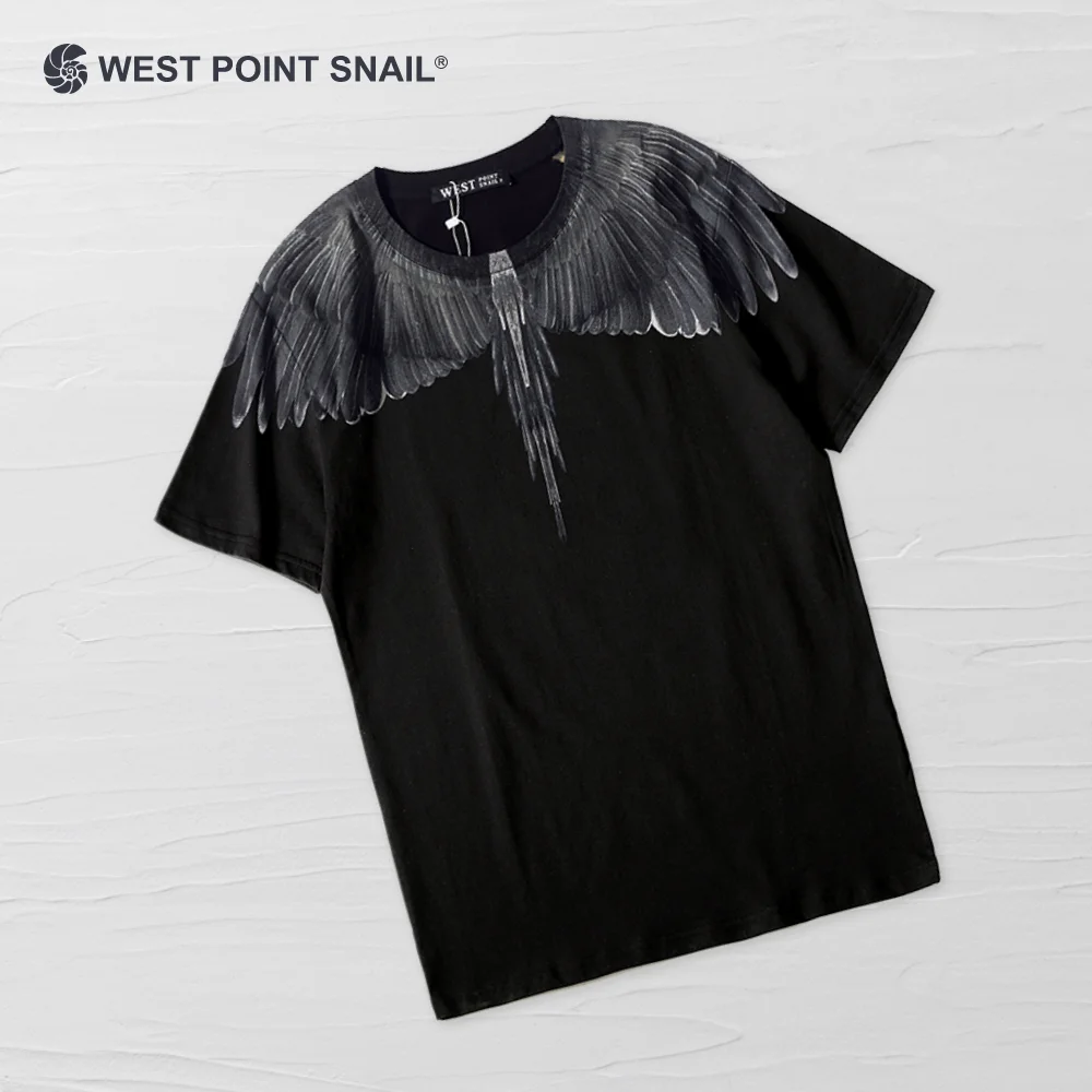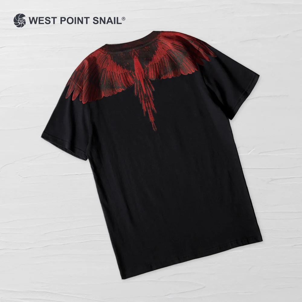 Мужская и женская футболка с принтом крыльев и обеих сторон, повседневные футболки в готическом стиле хип-хоп с круглым вырезом, топы из плотной ткани с короткими рукавами