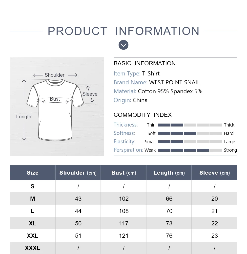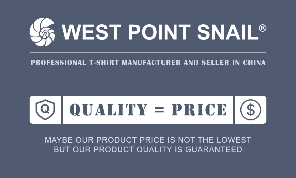 Футболки, продаваемые в этом магазине, являются брендом «WEST POINT SNAIL», профессиональным производителем футболок и продавцом в Китае. В соответствии с концепцией «Управление целостностью», мы обещаем, что все продукты этого бренда в магазине являются 100% аутентичными.