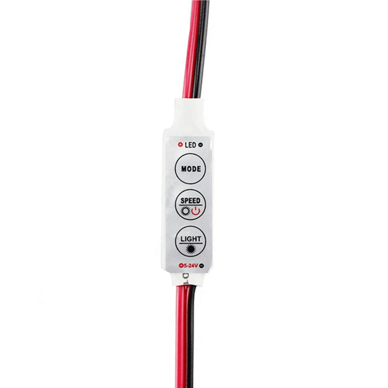 Мини 3-клавишным монохромный контроллер принимает передовые компьютерные чип управления, который в основном используется для того чтобы контролировать различный Одиночный цвет/RGB лампы со светодиодной подсветкой, как светильник источник; Он имеет преимущества низкая цена, удобная проводка и простая эксплуатация. 10 уровней яркости, 8 видов монохромных режимов, могут достигать нескольких режимов, таких как вспышка, дыхание, выцветание, стробоскоп, мигание и т. д. скорость уровня 10. Он имеет характеристики небольшого размера, легко переносится и т. д., а также имеет функцию отключения памяти.