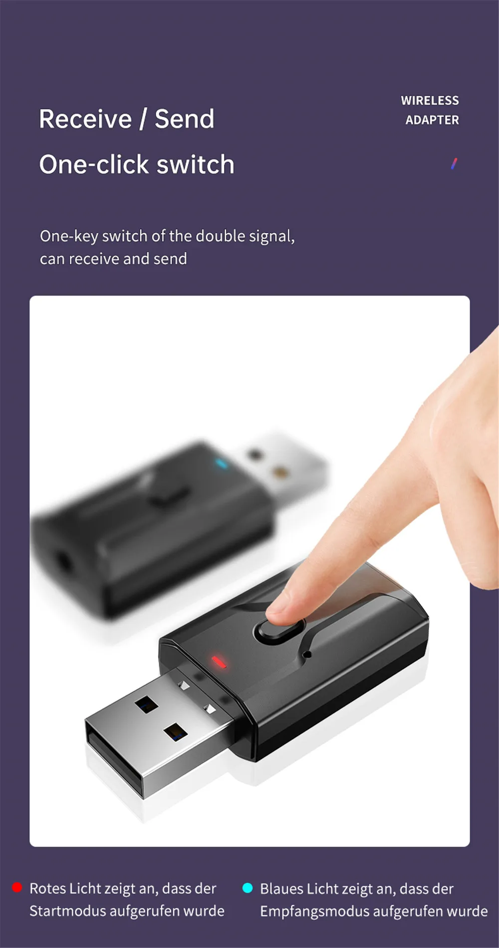 1x Bluetooth 5,0 аудио передатчик/приемник