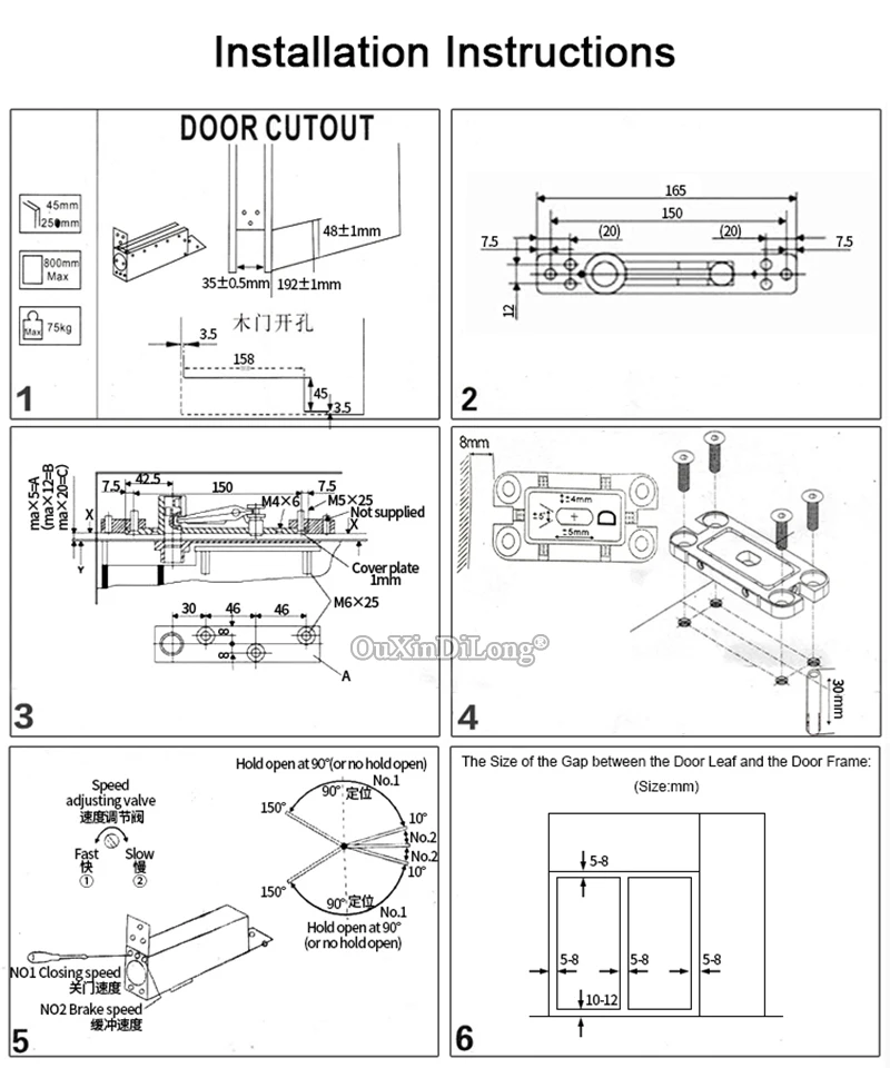 Подходящая ширина двери: 600 ~ 1000 мм