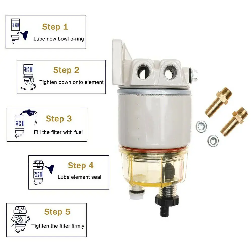 1. Топливный фильтр для разделения воды подходит для подвесных моторов 3/8 дюйма NPT.