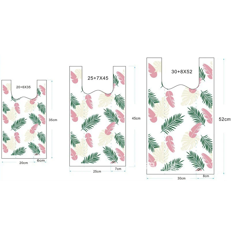 50 шт пластиковый пакет для еды Модная Сумка-жилет с узором из перьев Внешний упаковочный мешок для пиццы бургера Вечерние сумки для конфет в супермаркете Описание: Название: пластиковый пакет Материал: пластик Размер: (ширина x длина + ширина по бокам) S:20x35 + 6 см M:25x42 + 7 см L:30x52 + 8 см Применение: Свадебные вечерние сумки для конфет, хозяйственные сумки для супермаркетов, пакеты для упаковки пищевых продуктов, фрукты и пакеты для упаковки овощей, кухонные сумки для хранения, кухонные мешки для мусора и т. д. Посылка: 50 шт х пластиковый пакет Примечание: 1. При ручном измерении возможна погрешность в 1-2 см 2. Из-за машинной упаковки возможна погрешность в 1-3 шт. 3. Настройка логотипа не поддерживается