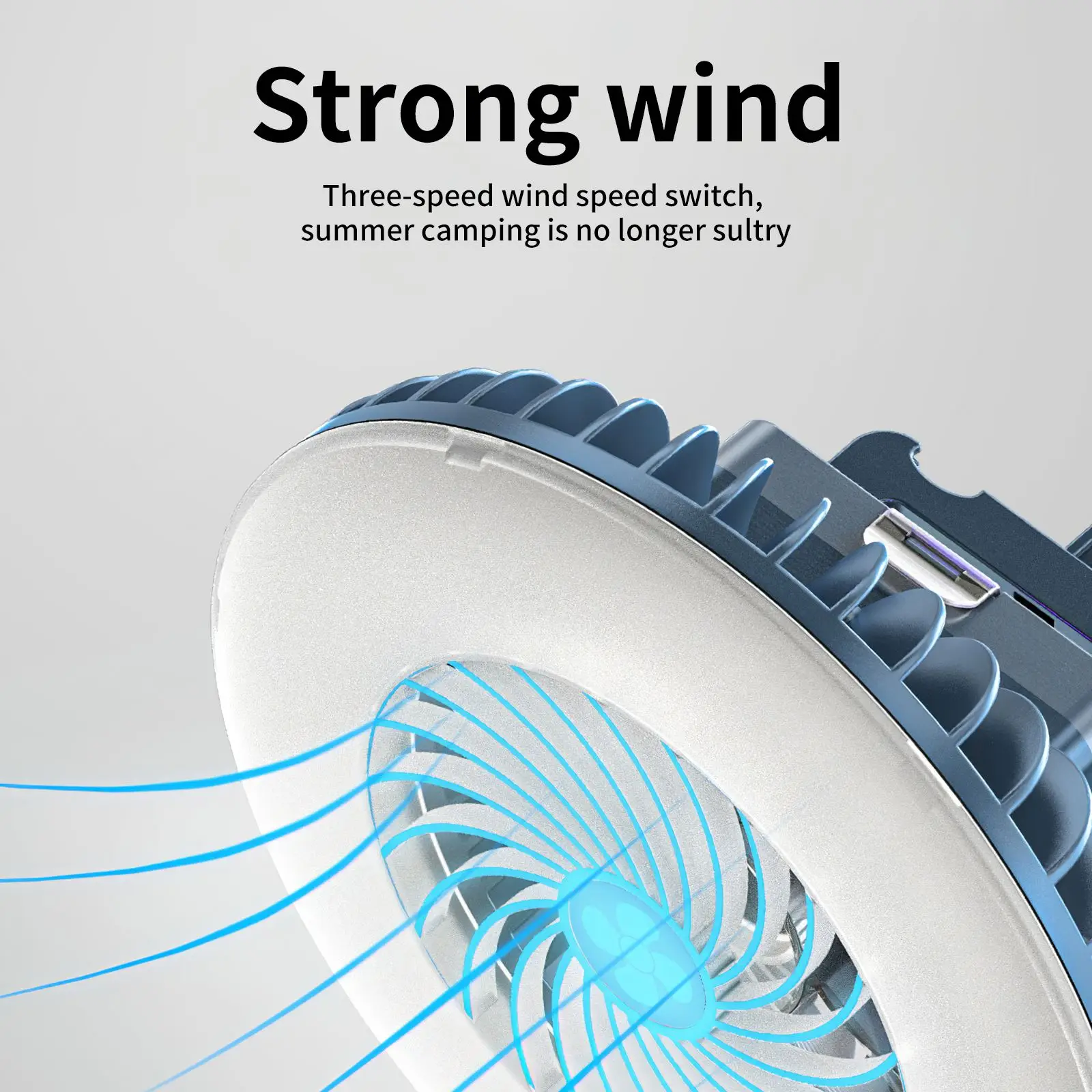 Светильник для кемпинга-это не только светильник ing, но и вентилятор. Он использует выбранные листья вентилятора, которые обладают хорошим эффектом сбора ветра. Он имеет три уровня скорости ветра, и вы можете иметь регулировку.