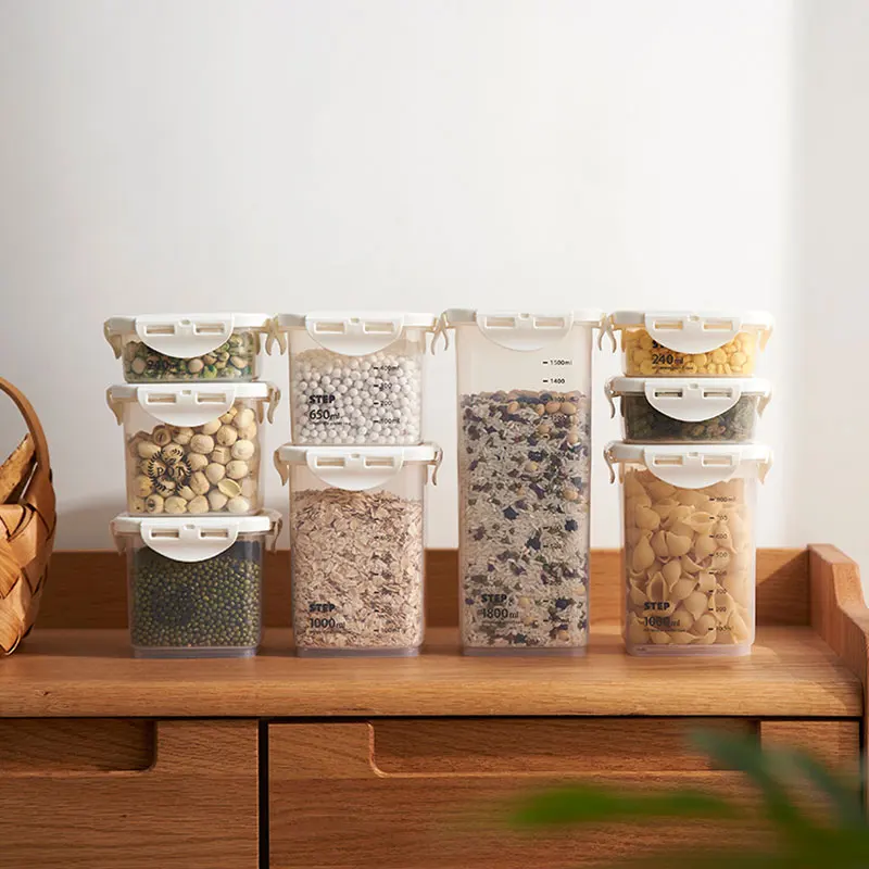 Название продукта: контейнер для сухой еды для кухни, герметичный контейнер для хранения Категория продукта: герметичная коробка для хранения Цвет: прозрачный Материал: полипропилен Размер: 240 мл, 11.5х5.2см 650 мл, 11,5х9, 7 см 1000 мл, 11.5х14.5см 1800 мл, 11,5х24 см Упаковка: OPP мешок Упаковочный лист: Кухонный Контейнер для сухой еды, герметичный контейнер для хранения