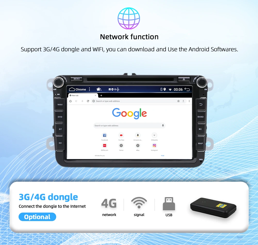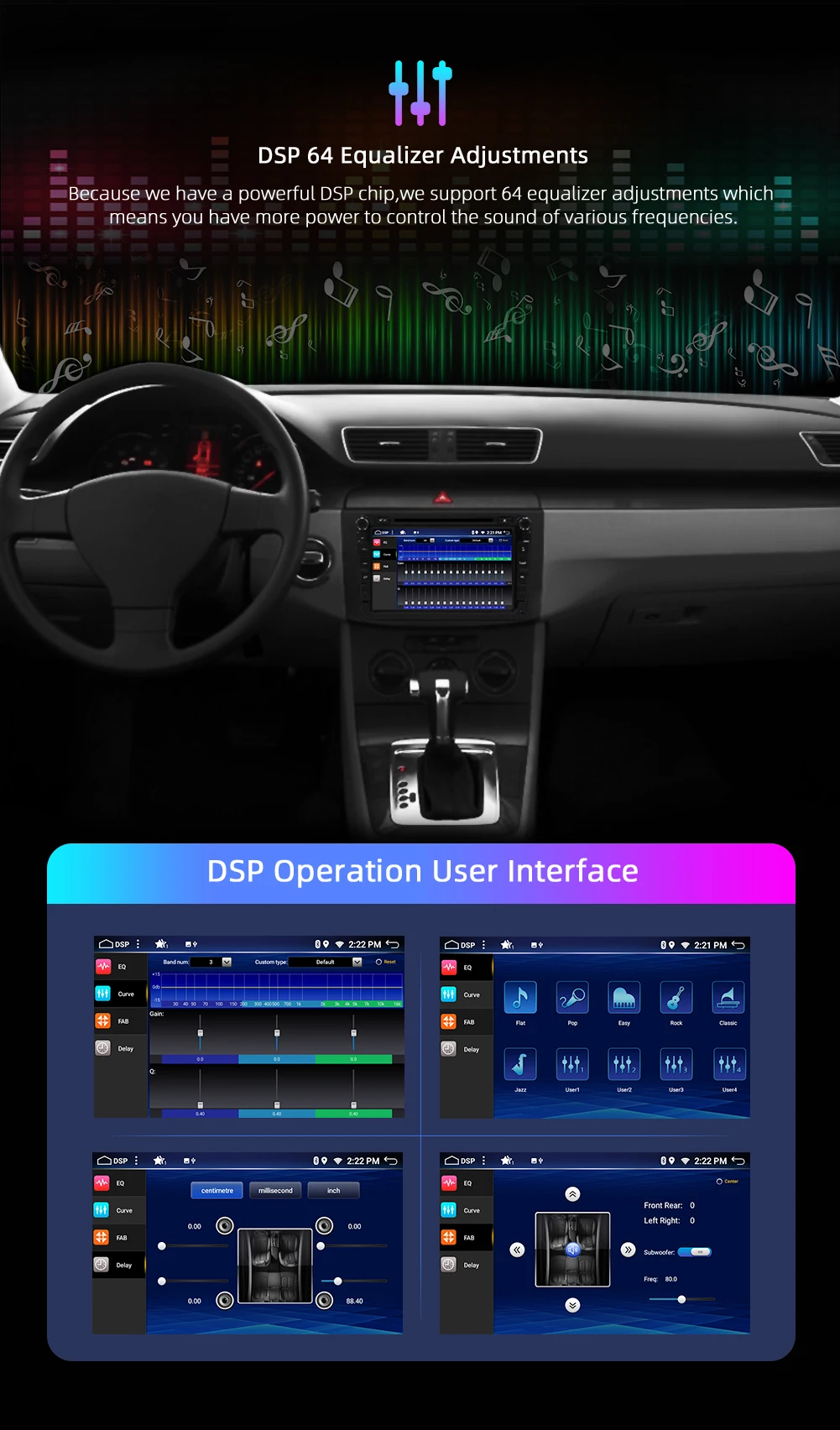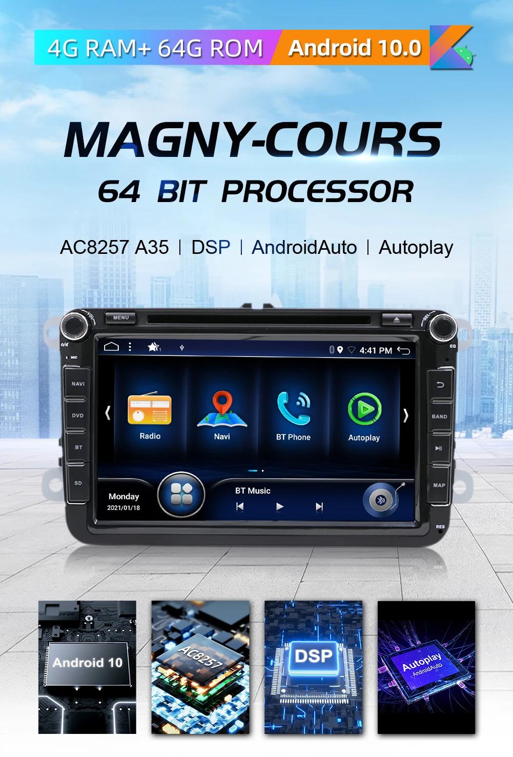▲Встроенный DSP(64EQ), встроенный Carplay, поддержка Dab + Радио, зеркальная ссылка и оригинальная функция управления рулевого колеса автомобиля, USB & micro SD до 500 Гб, встроенный WiFi Интернет, google Maps онлайн навигация, Бесплатная автономная навигация по карте, Google Play Store Выходная мощность: 4*45 Вт Bluetooth 5,0, радио IC TDA 7786. Усилитель 7851 Рабочая температура-20 ℃-+ 70 ℃ Видео: поддержка 1080P,AUX IN, RCA выход