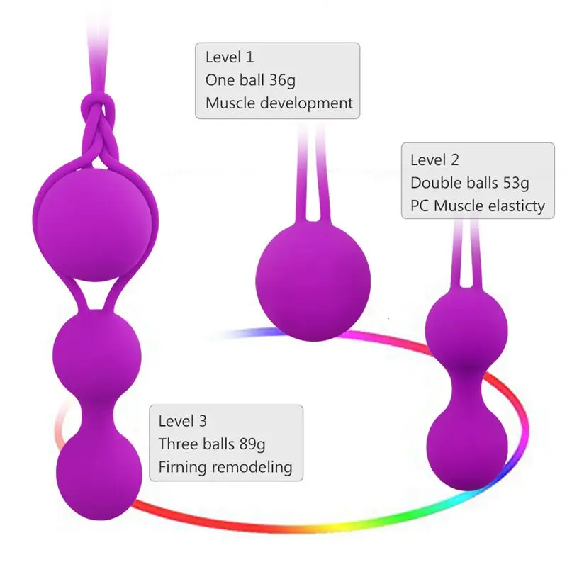 Цвет: фиолетовый, розовый, черный Размер: как показано Вес: 32 г, 50 г, 62 г Материал: медицинский силикон, металл внутренняя структура: Встроенные металлические шарики Водонепроницаемость: 100% водонепроницаемый характеристики: растяжение применимые люди: взрослые женщины Boby массажер: влагалище, анальный Функция: делать упражнения для влагалища, сделать влагалище более плотным.