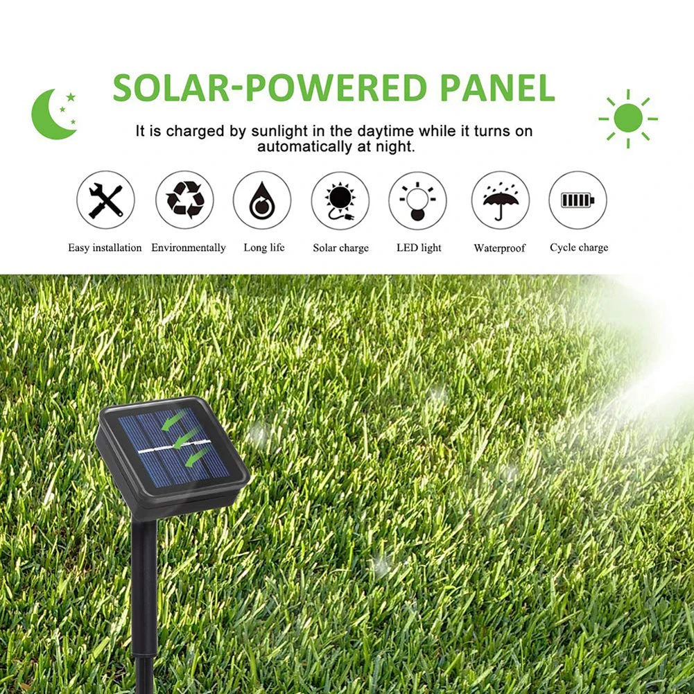 Время работы зависит от солнечного света. В солнечный день аккумулятор будет полностью заряжен, а струнный светильник сможет работать более 8-12 часов ночью.