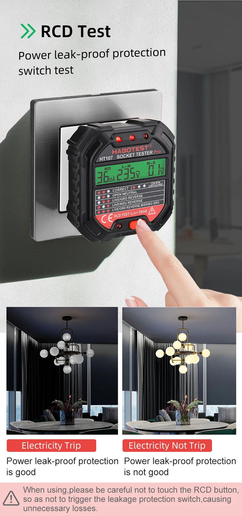 Профессиональный тестер розеток, профессиональный детектор, тестер электрических розеток, RCD 30mA, Великобритания, ЕС, заземление, заземление, заглушка, полярность, проверка фазы