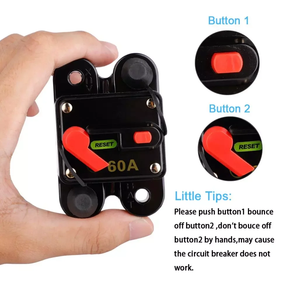 Автоматический выключатель с высоким током Размер: 80 мм (Д) x 52 мм (Ш) x 40 мм (В) работает с 12-24vDC останавливает скачки напряжения от повреждения вашего крепления А Панель или брандмауэр уникальный сброс кнопки также может быть использован в качестве выключателя, высокотехнологичный водостойкий корпус Резиновые сапоги для защиты воды больше не тратят деньги на замену предохранителей