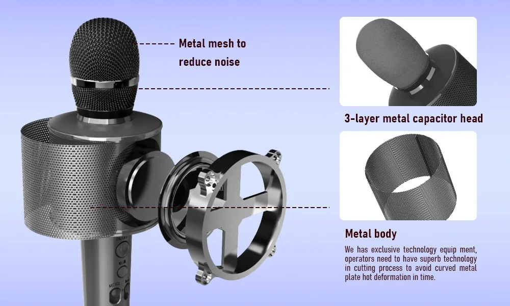 Беспроводной микрофон караоке может изменить ваш голос на ребенка, женщин, мужчин и монстров, делая шоу более интересным.