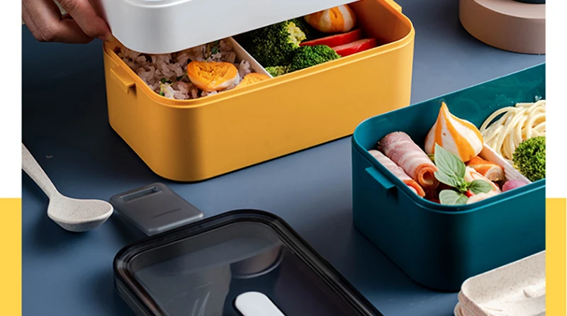 1: двухслойный Ланч-бокс с большой емкостью 1600 мл. Внутренняя коробка коробки для завтрака может использоваться отдельно. Повторное использование, попрощайтесь с одноразовыми коробками для пищевых продуктов. 2. Широкий дизайн пряжки с обеих сторон, эффективный контакт большой площади. Может сделать коробку bento лучше запечатывать. Пряжки с обеих сторон ланч-бокса были повторно проверены и долговечны. Стильный внешний вид, практичный внешний вид. 3. В середине есть отделение для хранения ложки. Верхний слой ланч-бокса имеет хорошее уплотнение и может переносить жидкую еду. 2 слоя бенто ланч бокс для хранения еды, отдельно от других вещей. 4. Люди, которые идут на работу, учатся и любят приносить свою еду. Сокращение расходов. Также более уверены.