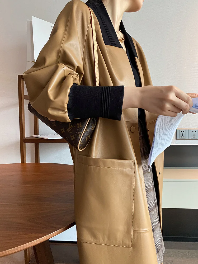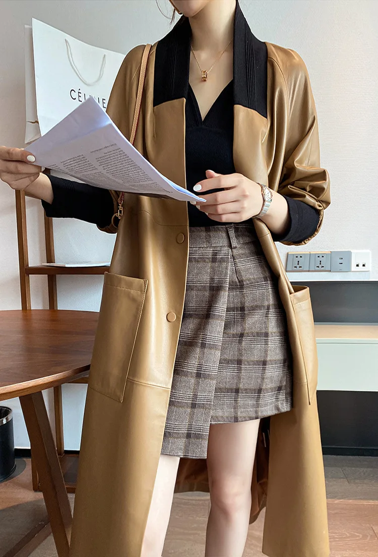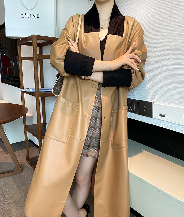 Трикотажное пальто с v-образным вырезом для отдыха, мы используем верхний слой овечьей кожи