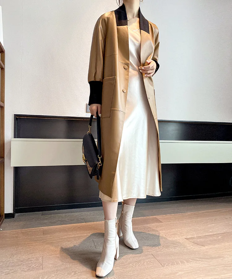 Серия «Han edition трикотажная кожаная ветровка с v-образным вырезом, Повседневная и беззаботная»