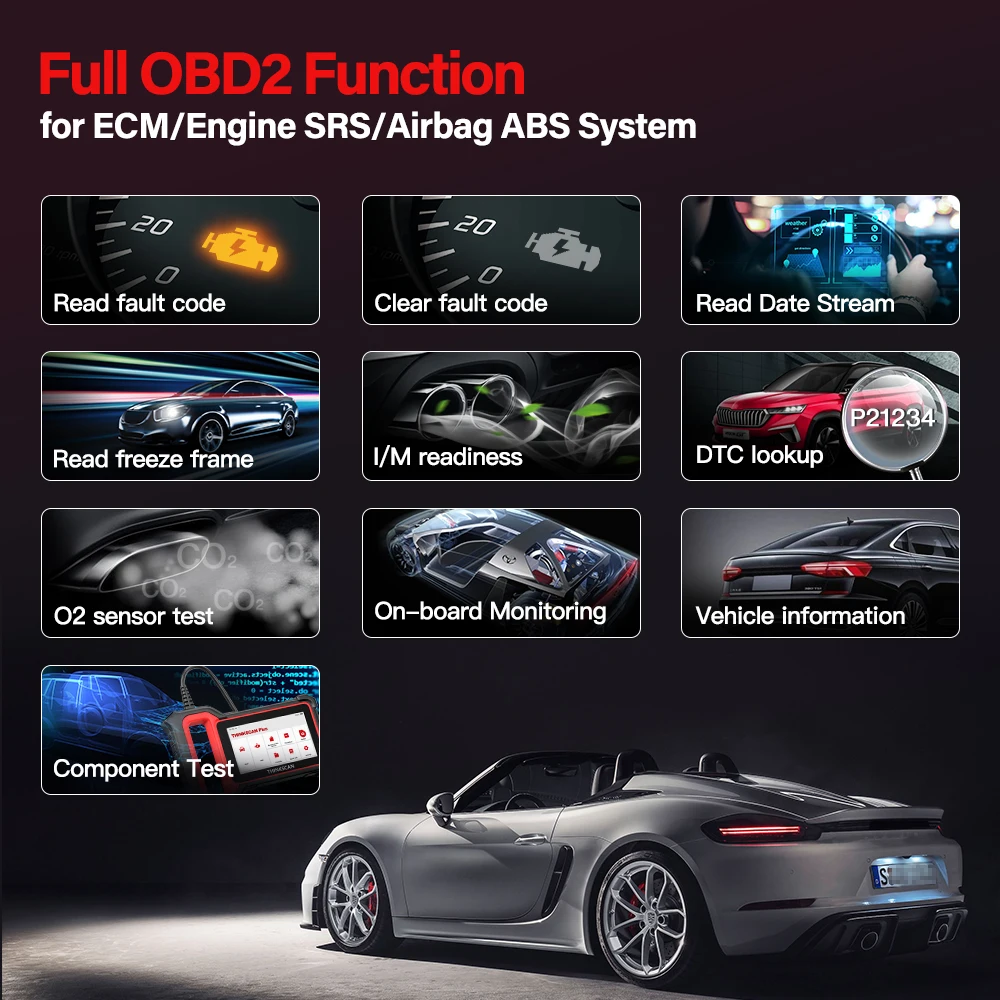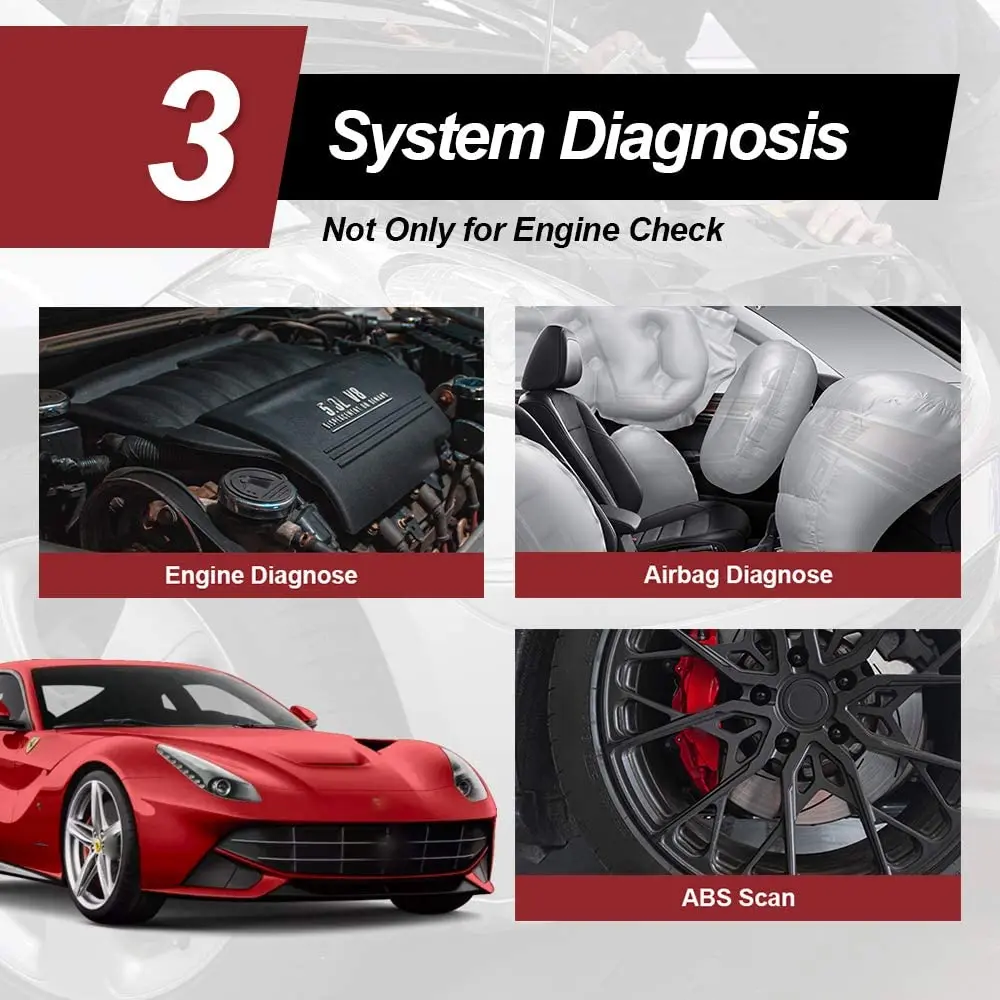 ● Диагностика системы двигателя: Он поддерживает все 10 режимов тестирования OBDII-данные в реальном времени, тест O2 sen sor, Fr данные о кадре eeze и многое другое; Чтение и очистка кодов ошибок двигателя, узнайте точную проблему и легко отремонтировать автомобиль.