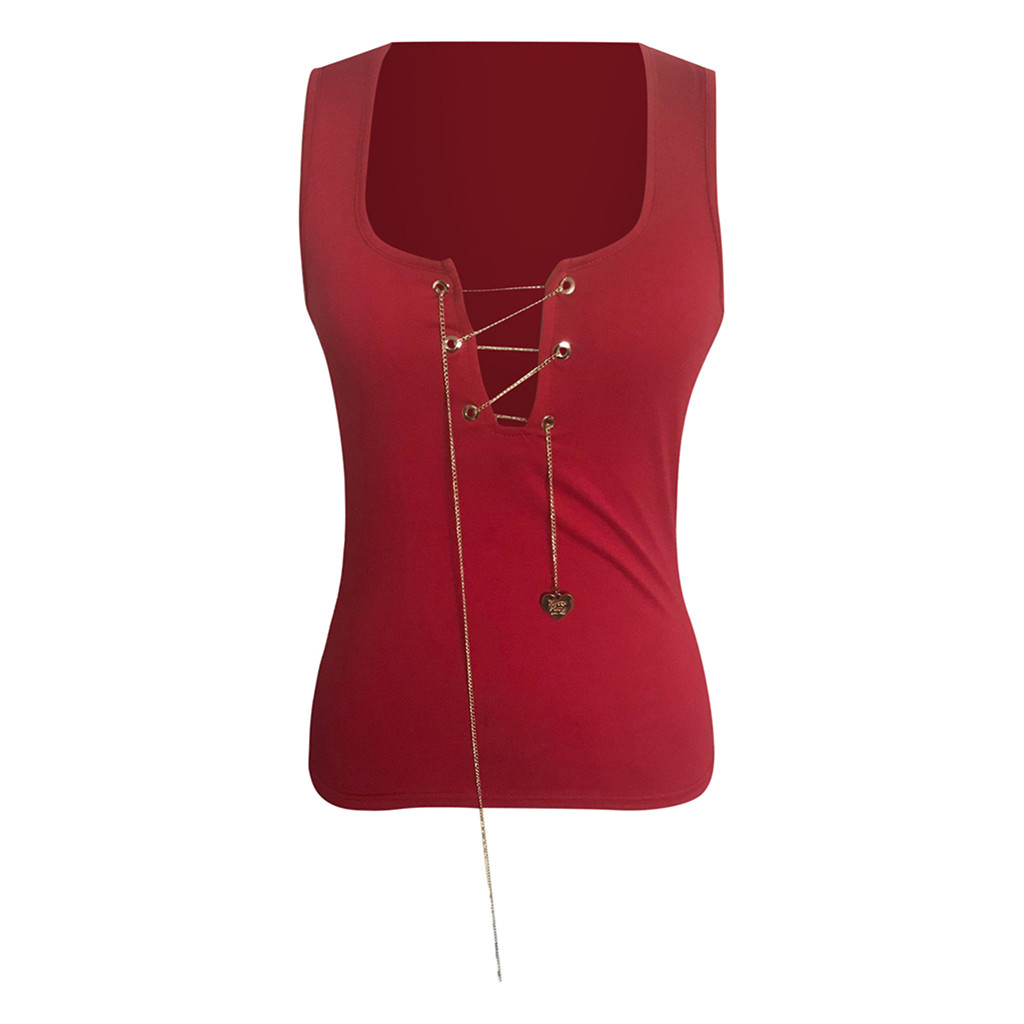 Женская сексуальная клубная майка на шнуровке с глубоким v-образным вырезом и цепочкой