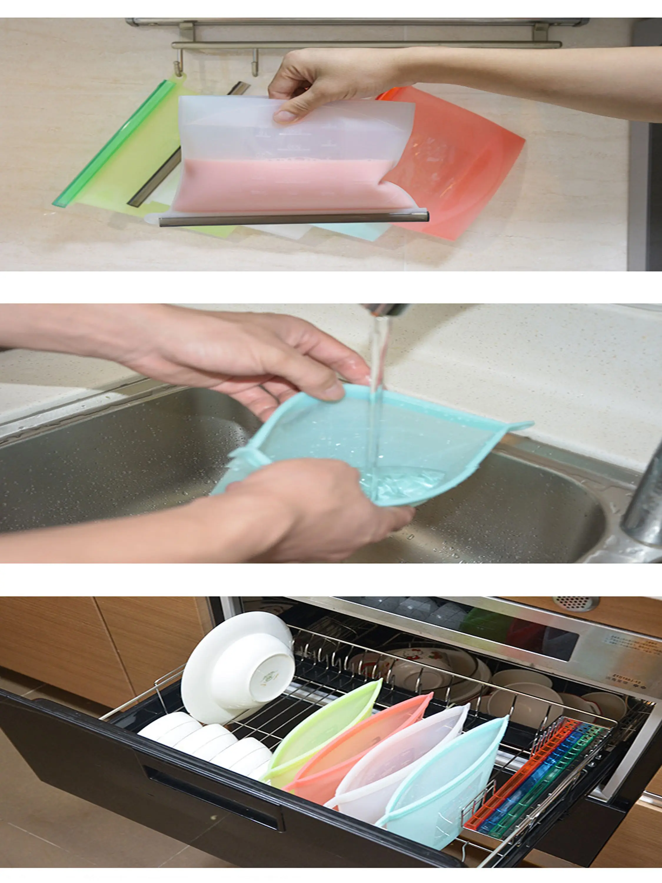 Сразу Уменьшите количество пластика в вашем доме с помощью этих многоразовых силиконовых пакетиков для хранения продуктов. Отличная термостойкость и морозостойкость, термостойкость-58 ℉ ~ 482 ℉(-50 ℃ ~ + 250 ℃). Безопасно использовать в посудомоечной машине, морозильной камере, микроволновой печи, духовке или кипящей воде. (Не нагревайте слайдеры)