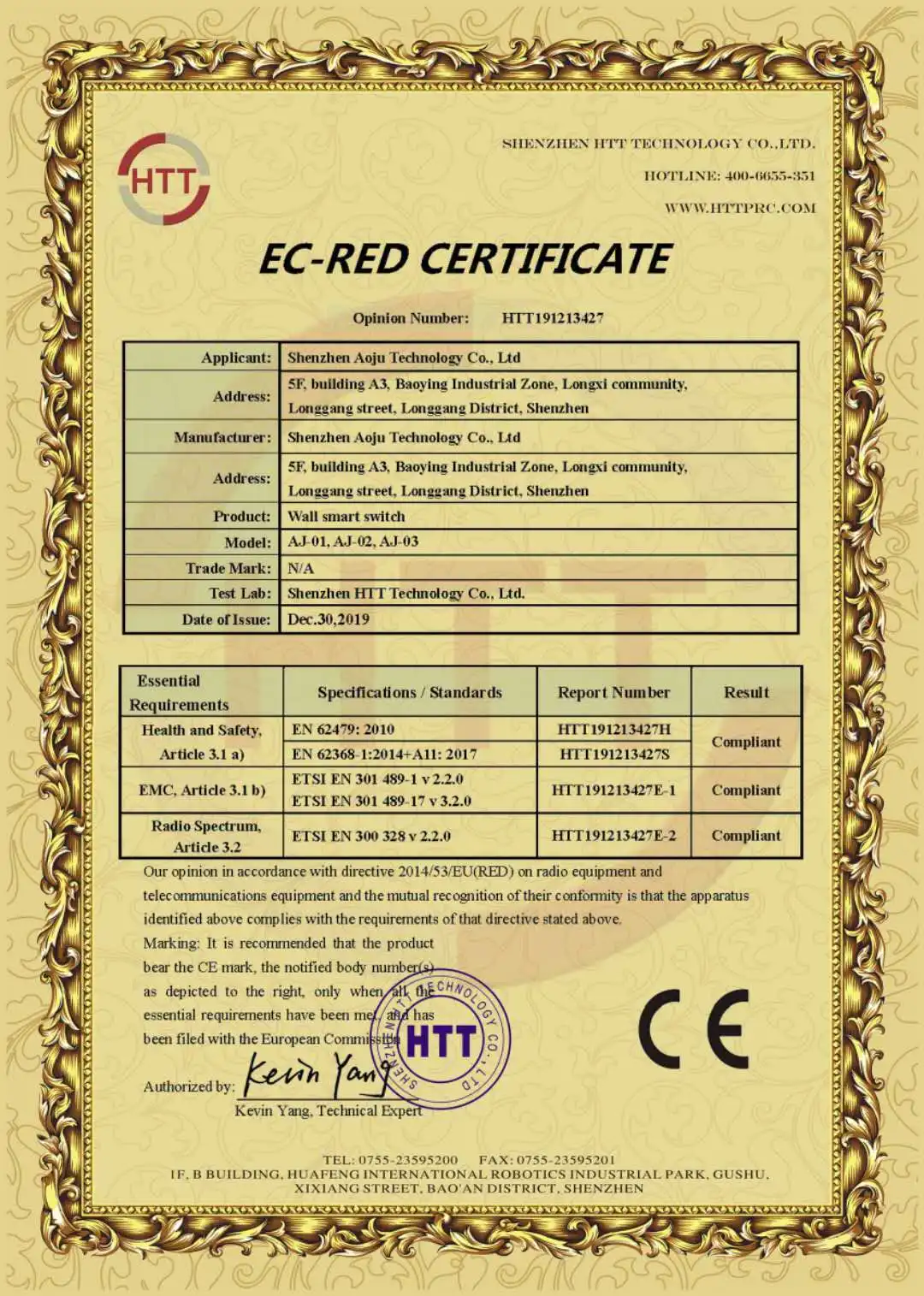 Сертификация: FCC, CE, RoHS
