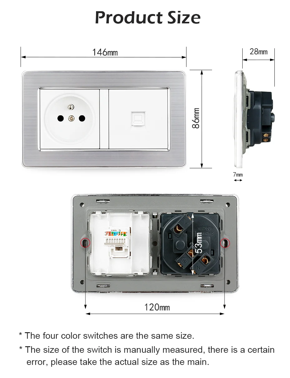 1. 100% абсолютно новая и высококачественная панель настенного гнезда. 2. Этот продукт должен быть установлен профессиональным электриком. 3. Он широко используется во многих местах, таких как отель, ресторан, дом, общественные места.