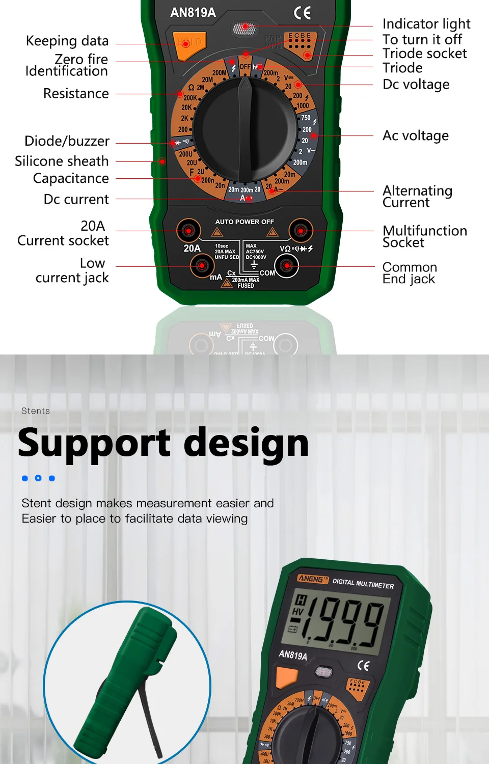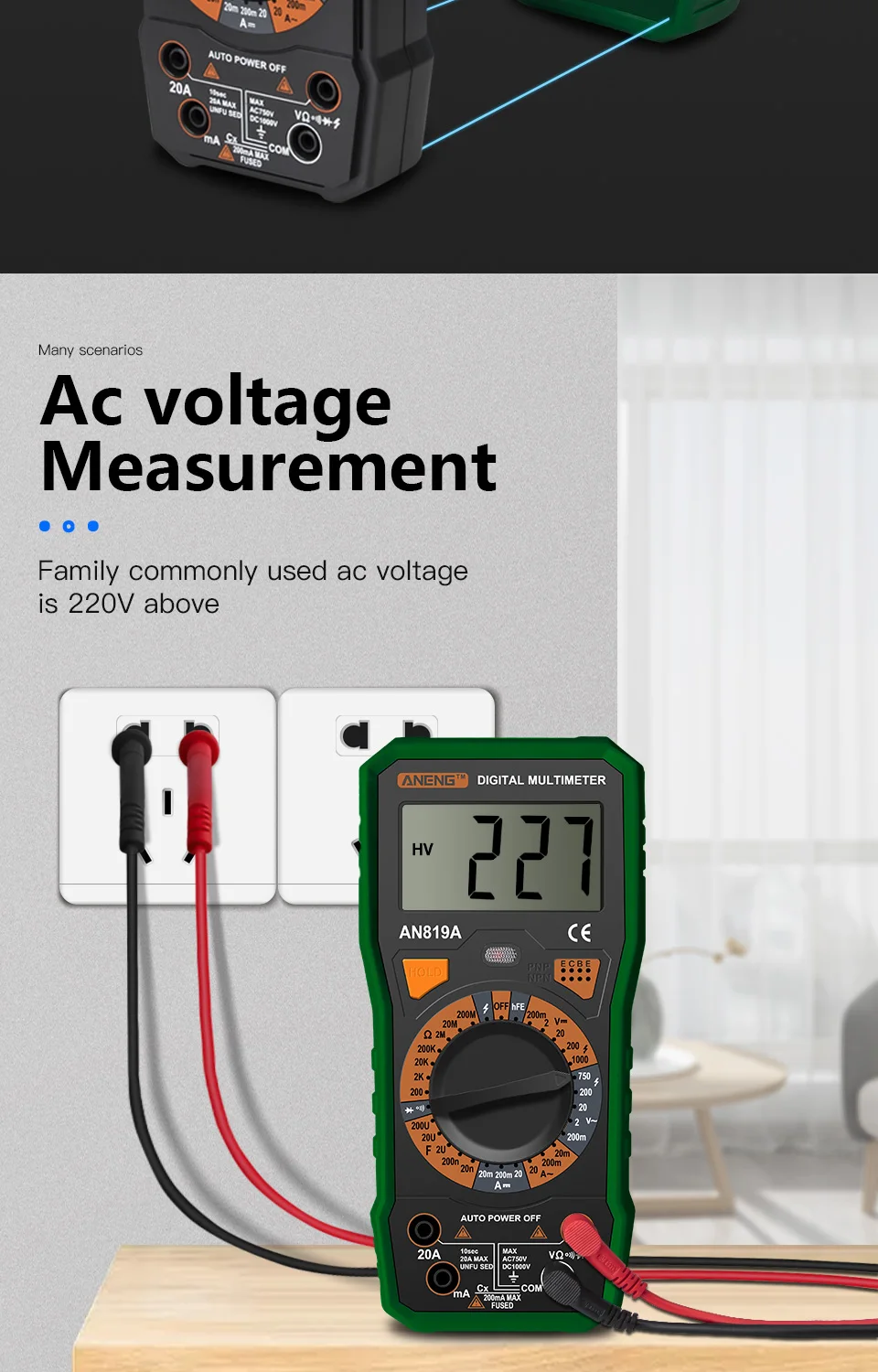 Цифровой мультиметр AN819A, Амперметр для измерения напряжения переменного/постоянного тока