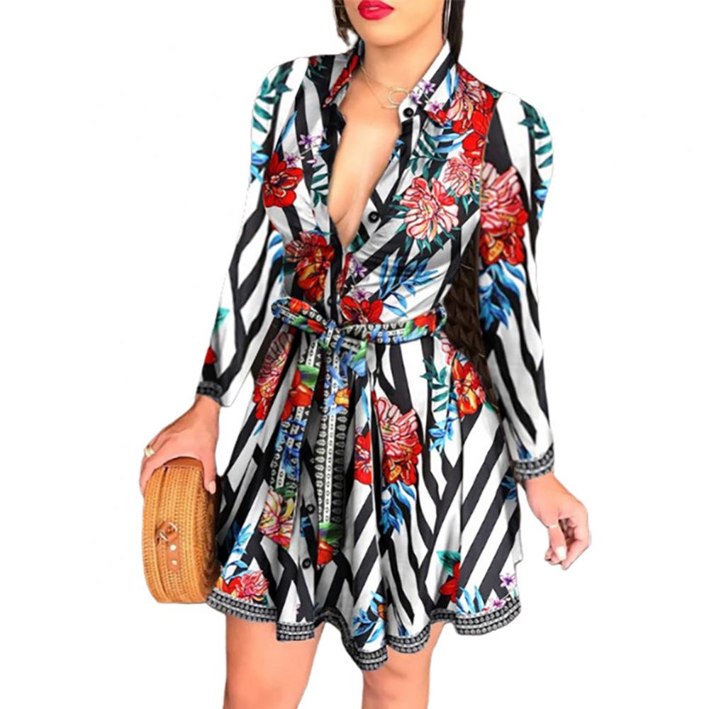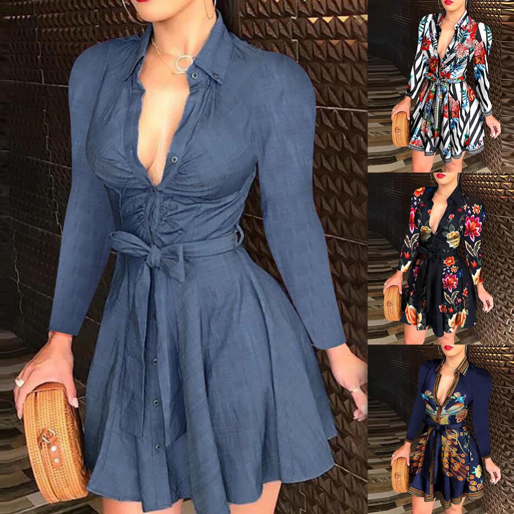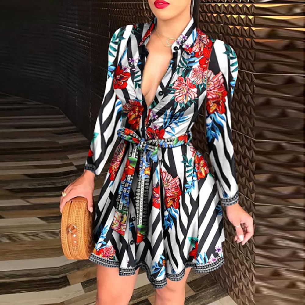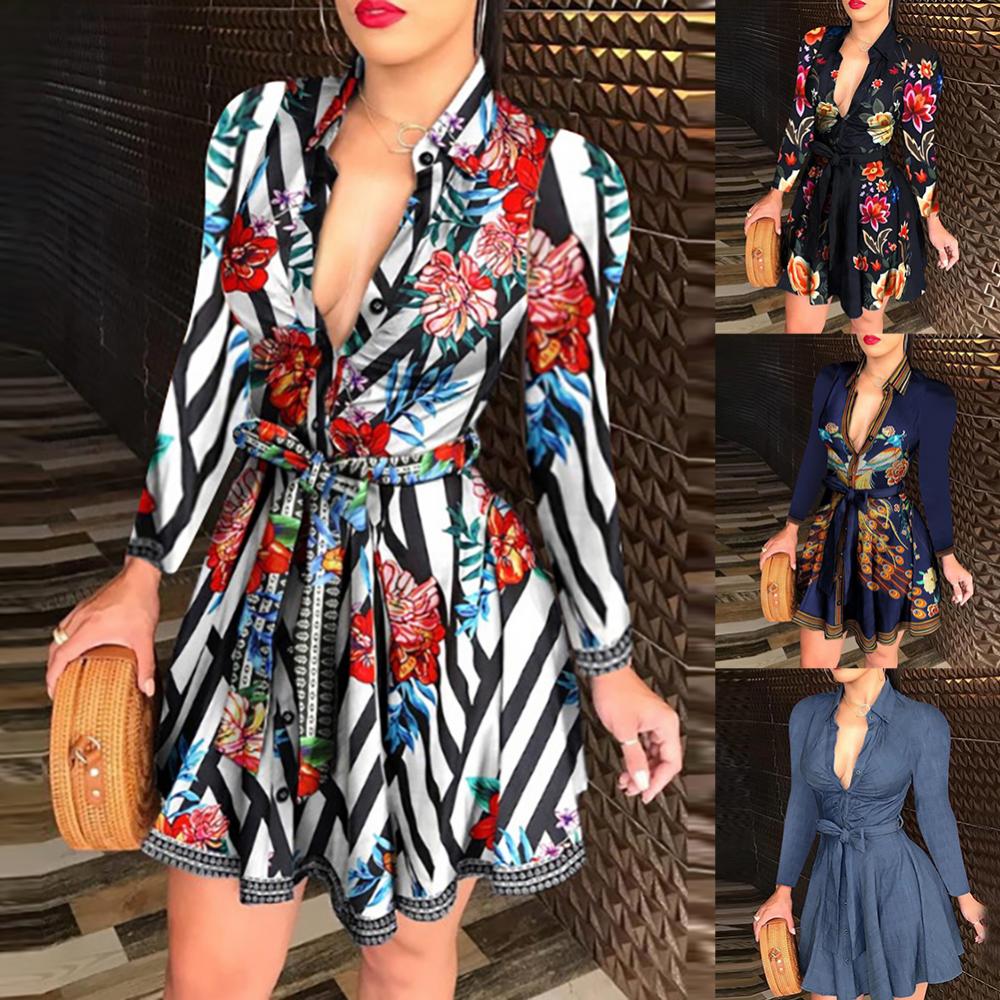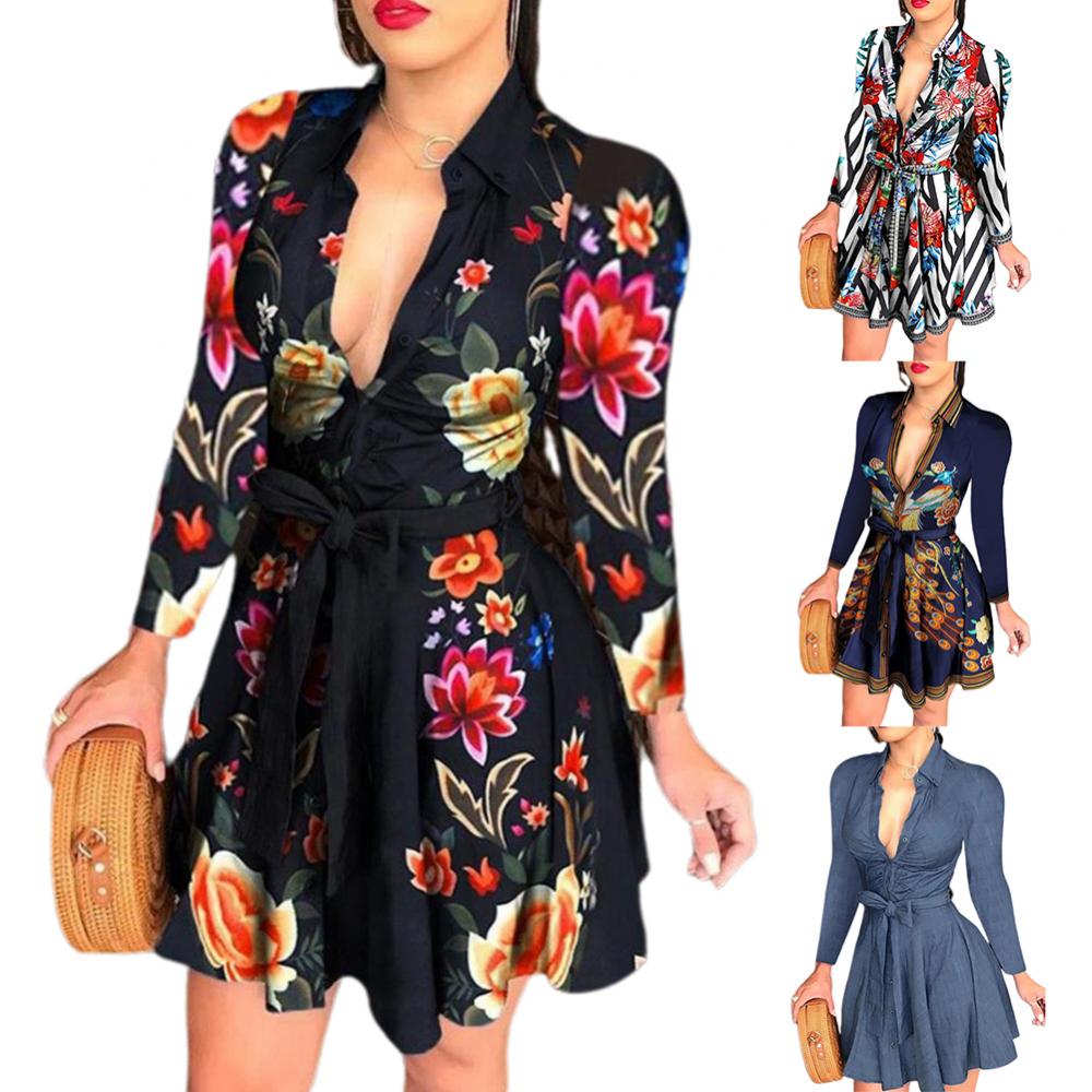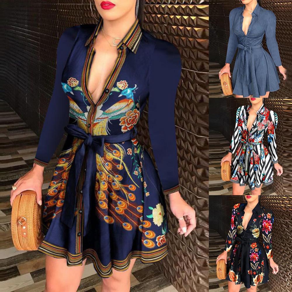 Модное женское платье с глубоким v-образным вырезом, длинным рукавом, павлин, цветочный принт, Бандажное мини-платье размера плюс 2XL для женщин, vestidos de mujer