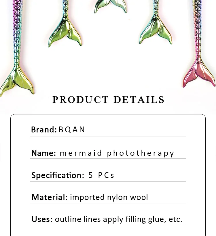 ANGNYA 5 шт./компл. Русалка Кисть для дизайна ногтей кристалл лайнер точечный акриловый строитель Рисование ручка для рисования вырезка УФ гель Маникюрный Инструмент